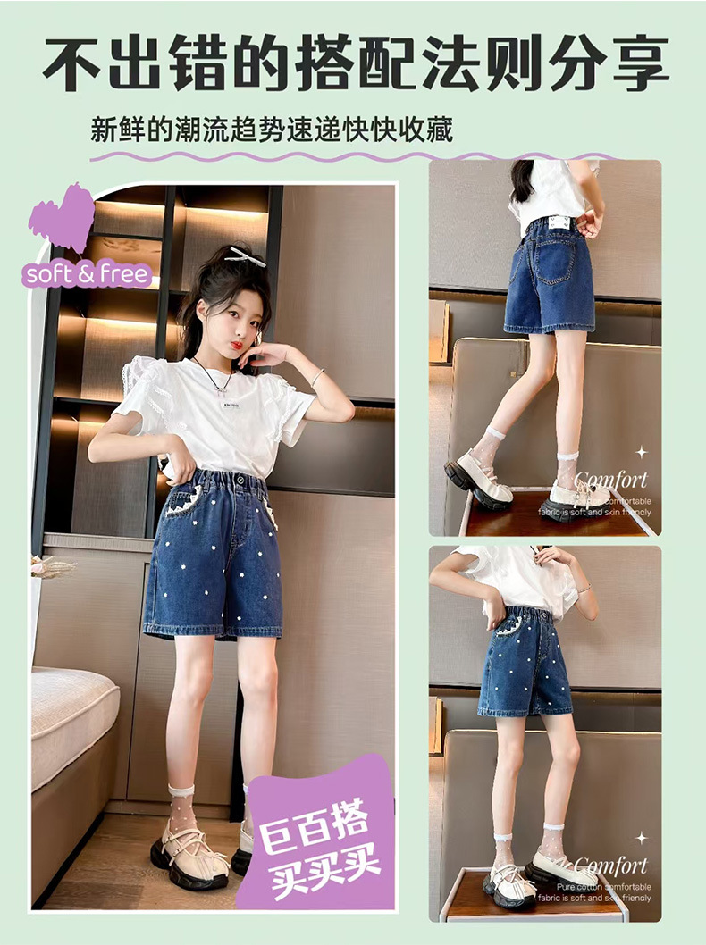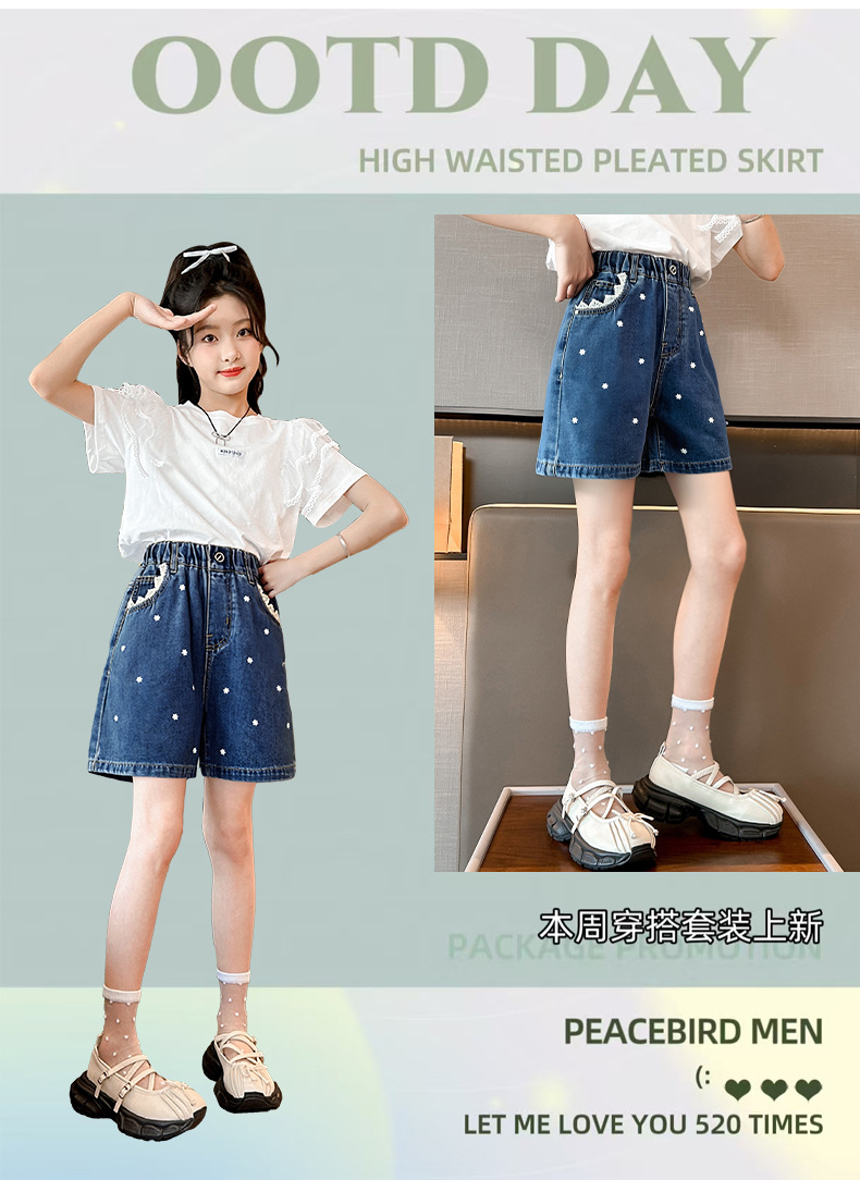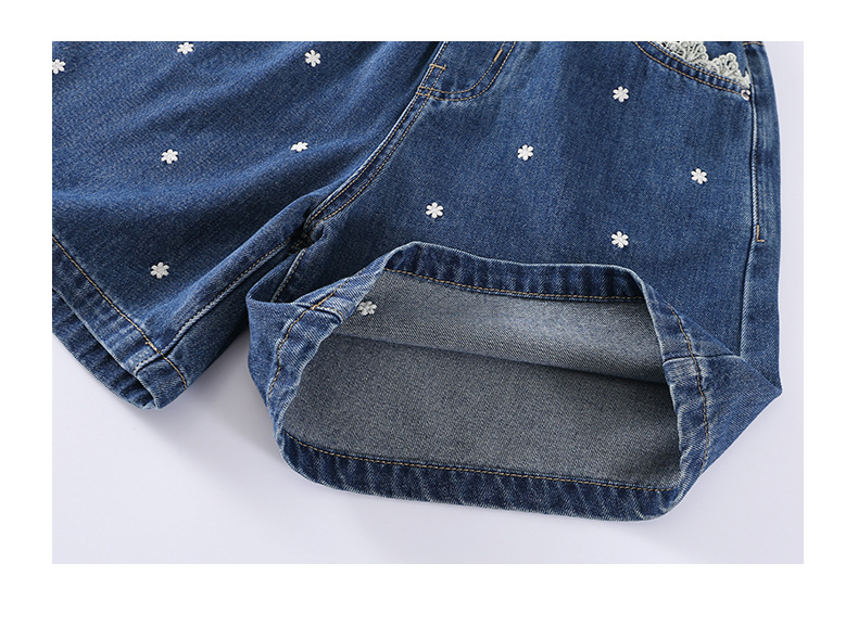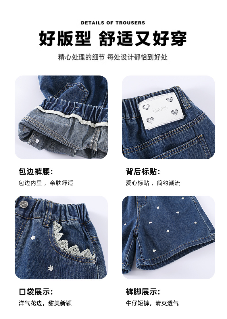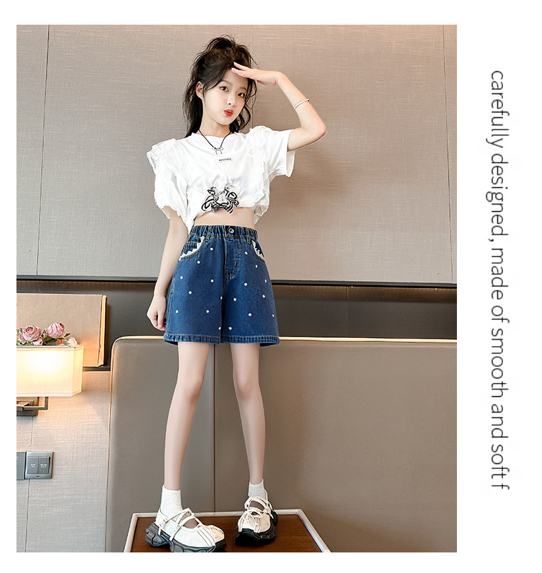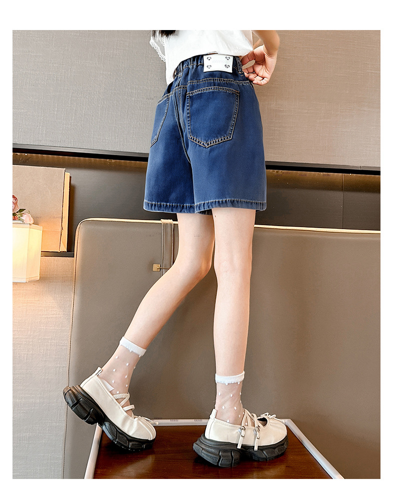 오렌지 타이거 걸스 여름 반바지 2025 새로운 세련된 어린이 소녀 큰 아이들 여름 유행 자수 외주 짧은스토어 가기