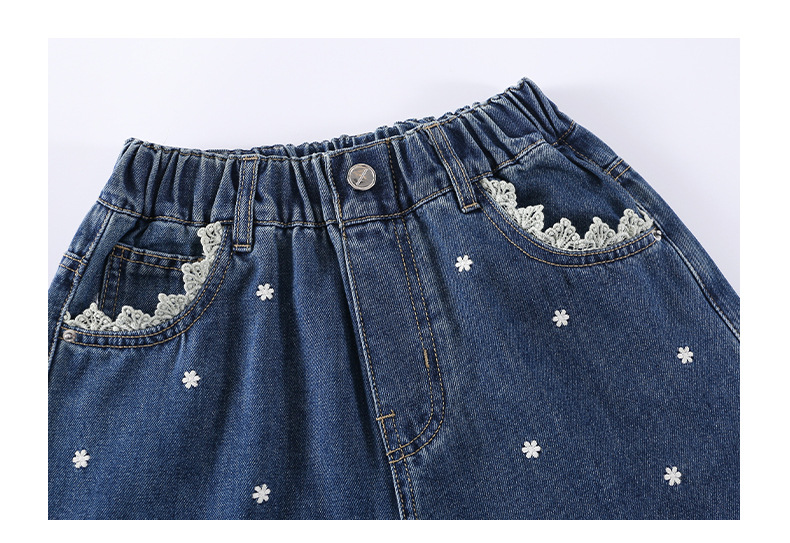 오렌지 타이거 걸스 여름 반바지 2025 새로운 세련된 어린이 소녀 큰 아이들 여름 유행 자수 외주 짧은