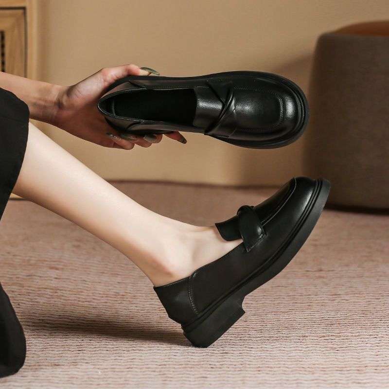 여성을위한 로퍼 2025 봄 새로운 부드러운 밑창 검은 색 작은 가죽 신발 여성 플랫 신발 전문 여성 신발 인터뷰 신발스토어 가기