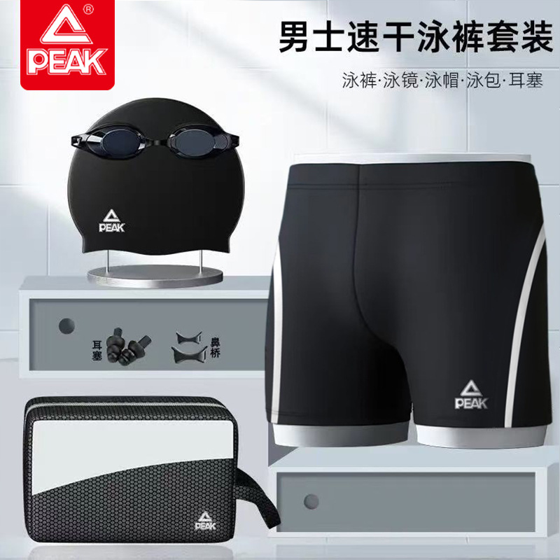 Peak/Peak 전문 남성용 수영 트렁크, 수영 모자, 고글 4피스 세트 새로운 수영복, 수영 피트니스 장비 전체 세트스토어 가기