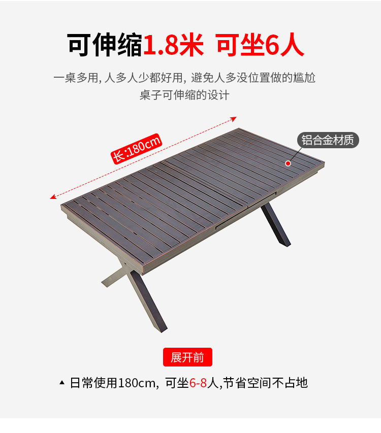 • 옵션 의자 8개 + 180cm 텔레스코픽 롱 테이블(240cm 확장)