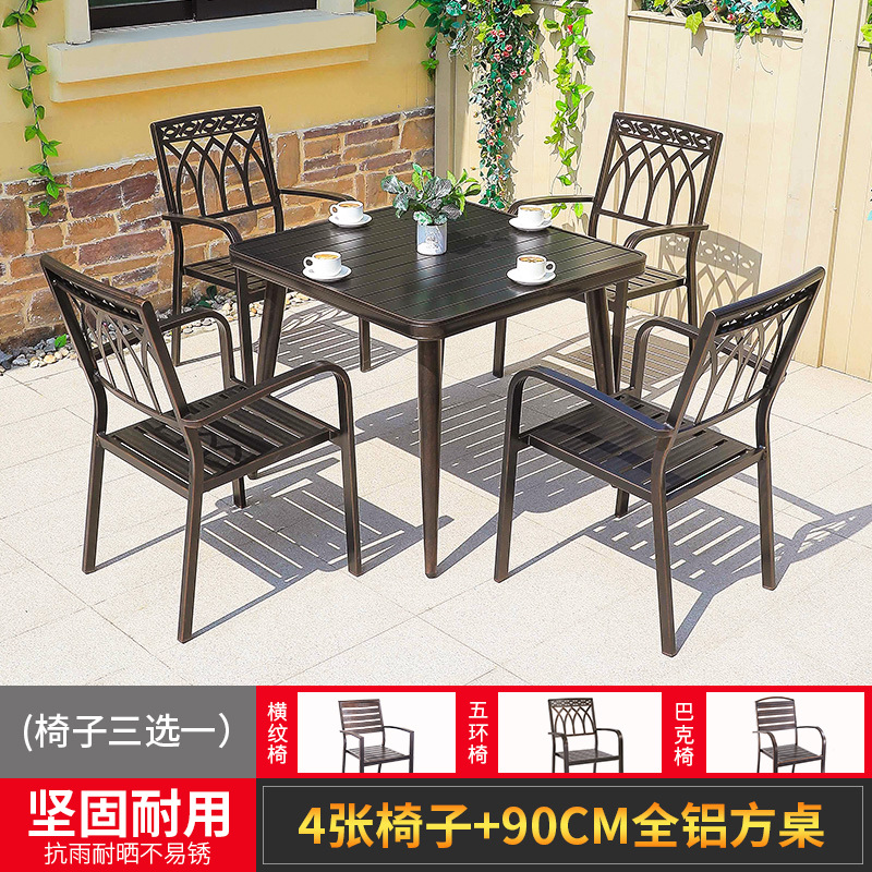 • 의자 4개 + 90cm 전체 알루미늄 정사각형 테이블 선택