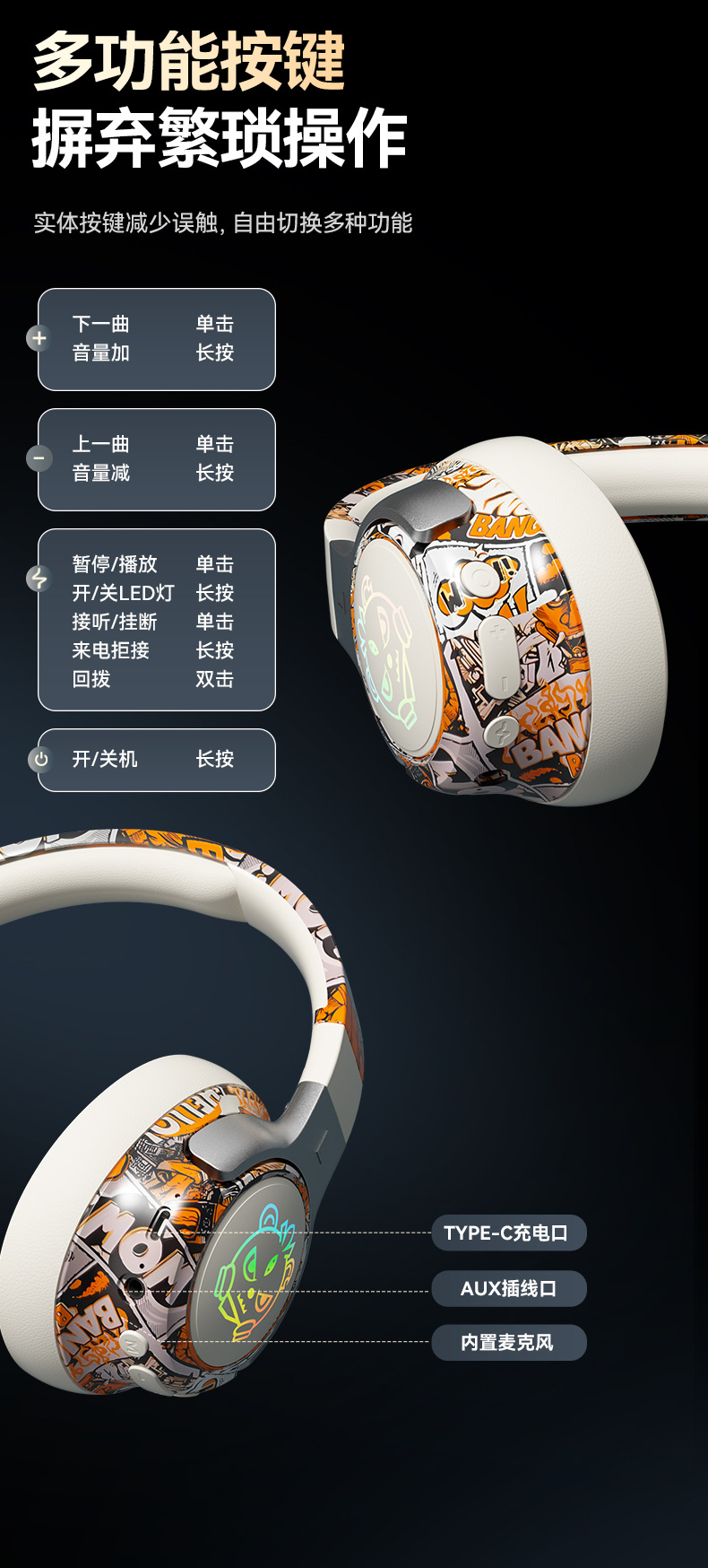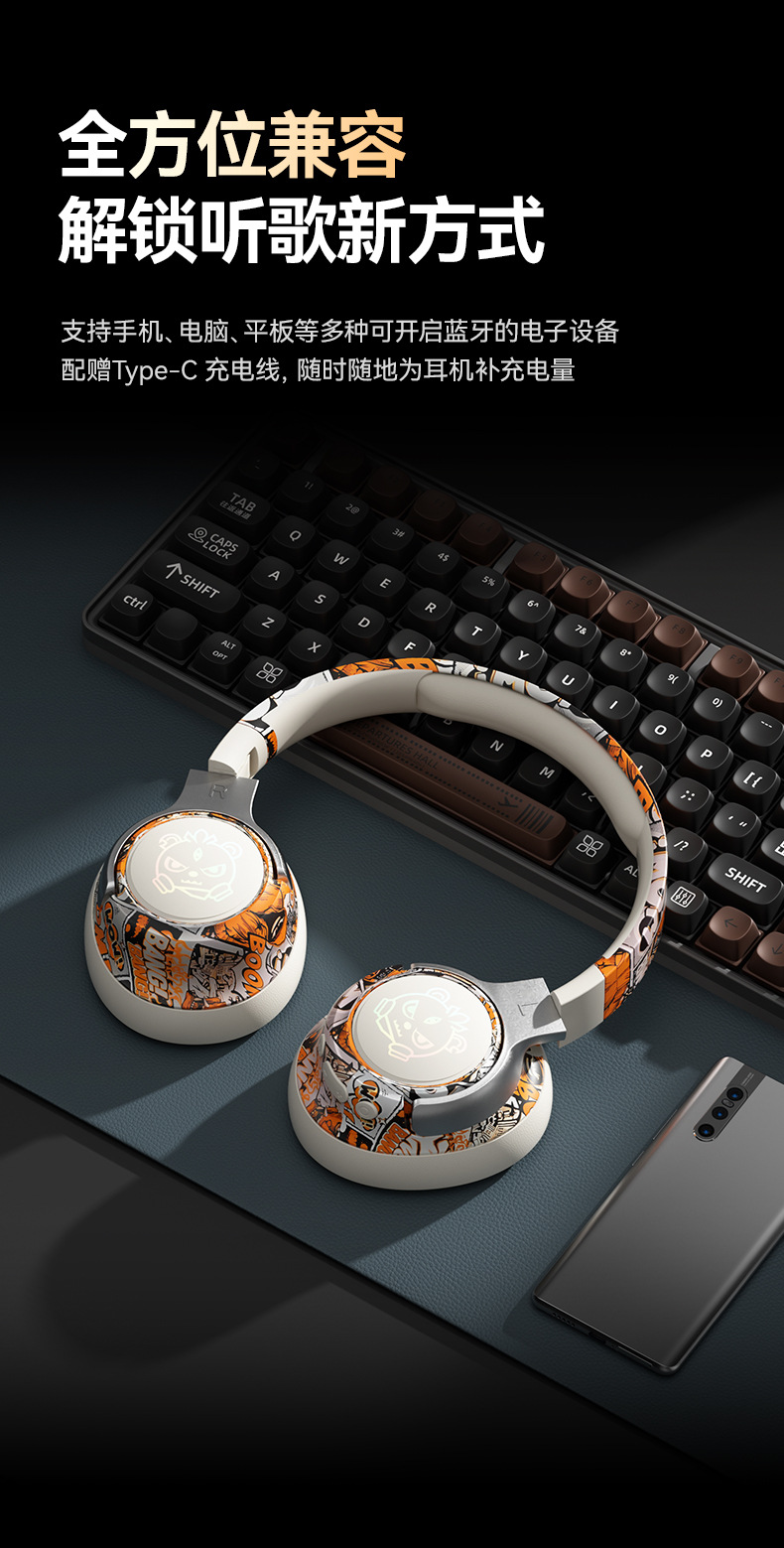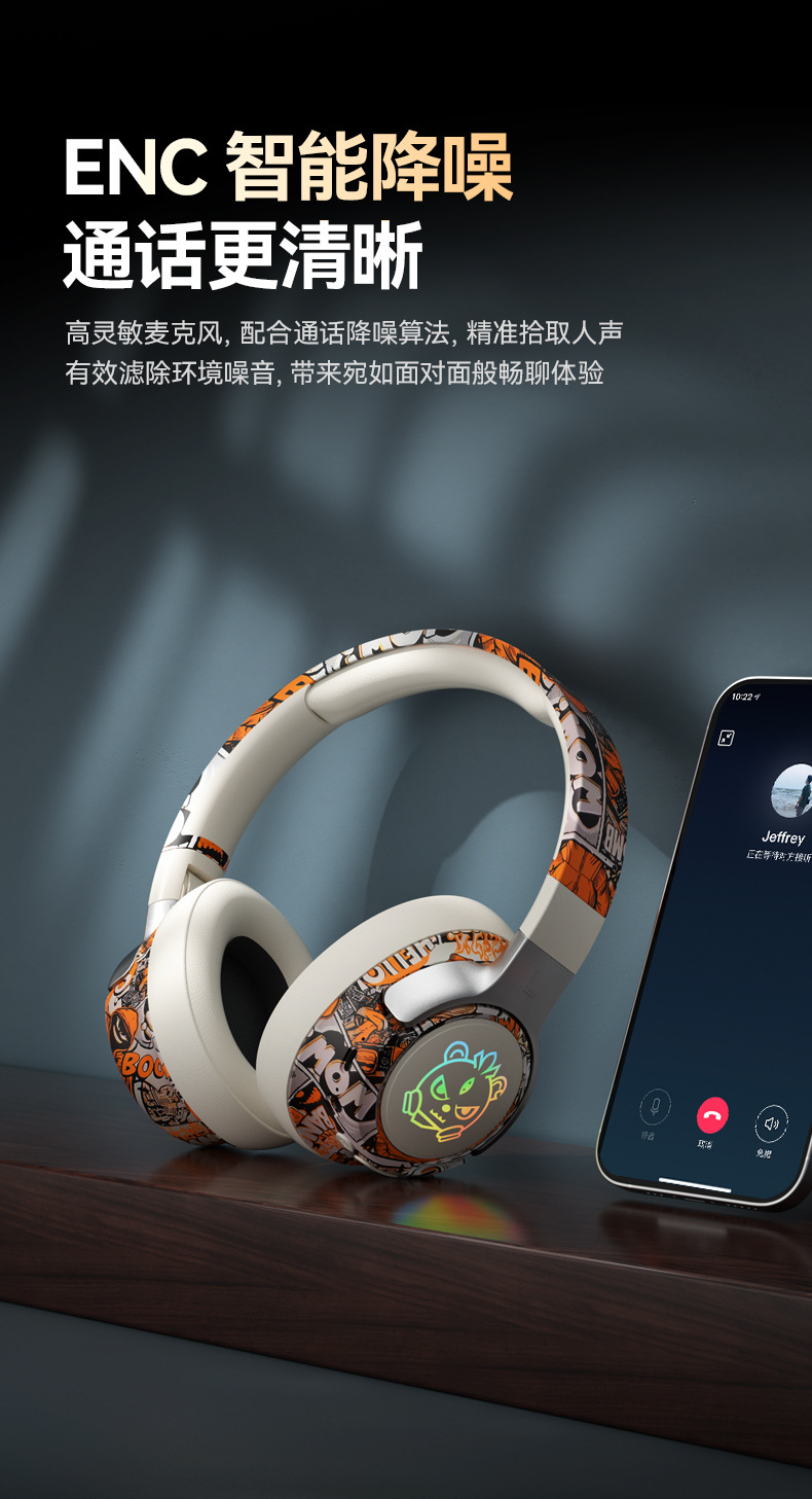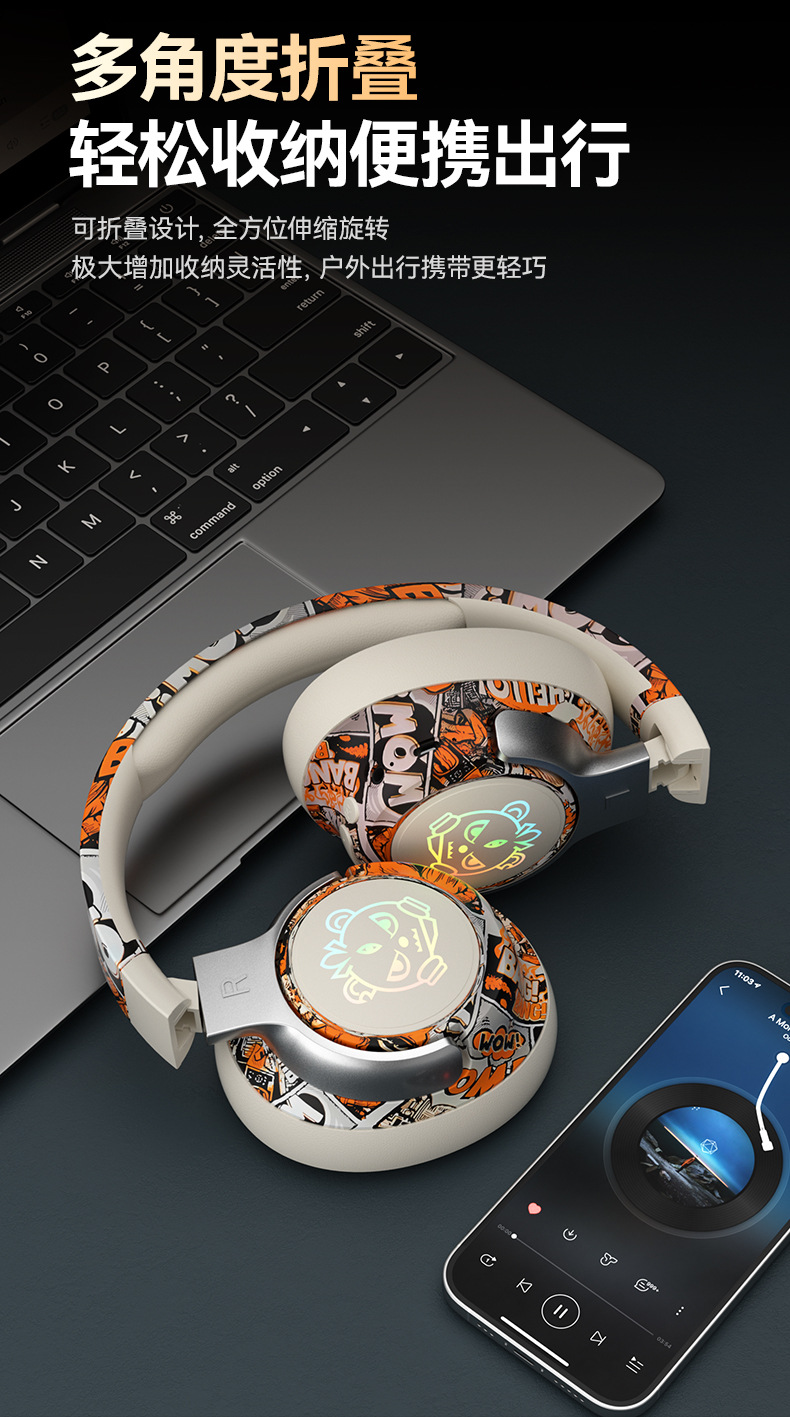 可旋转、可折叠,发光耳机