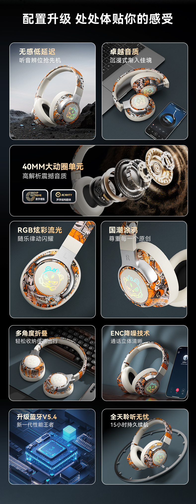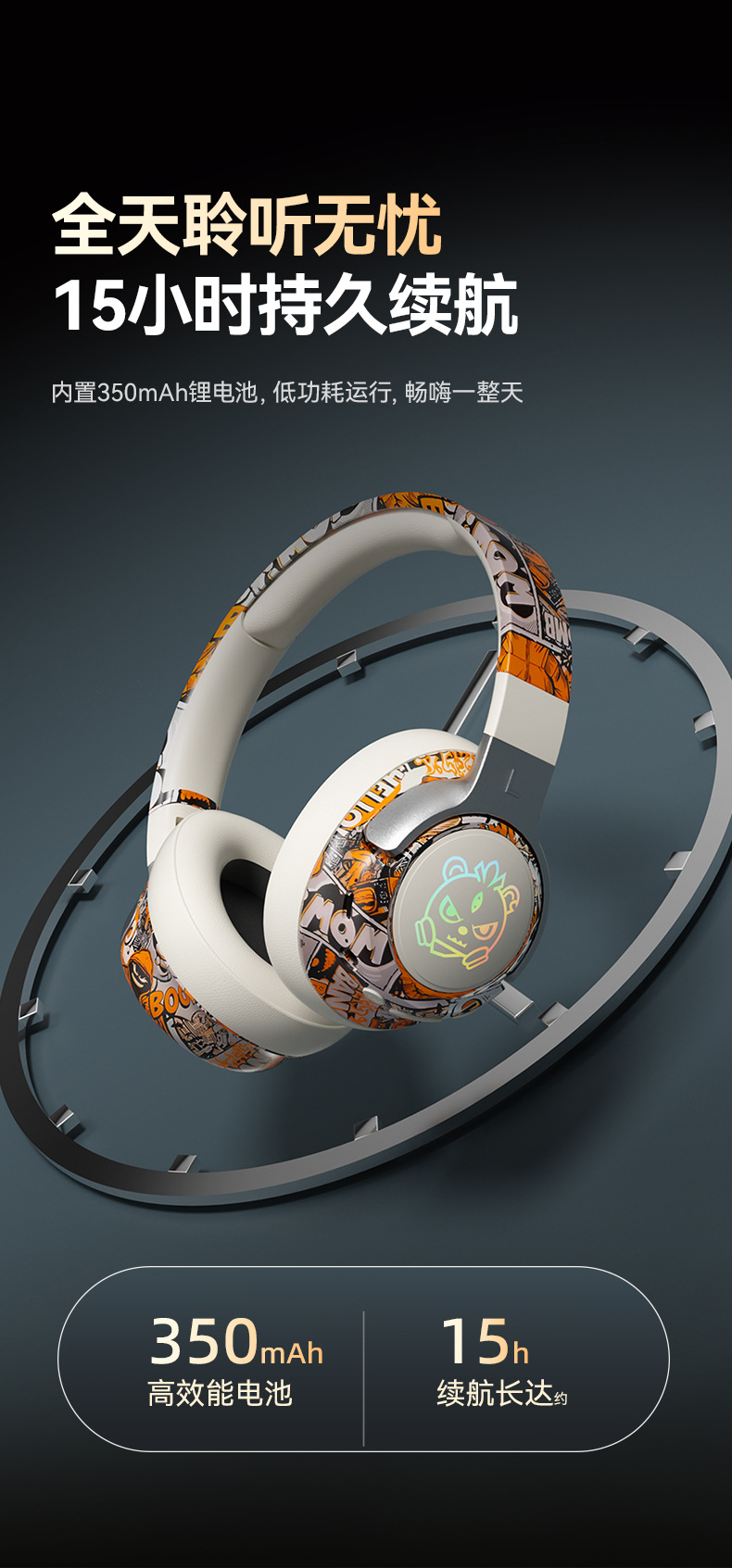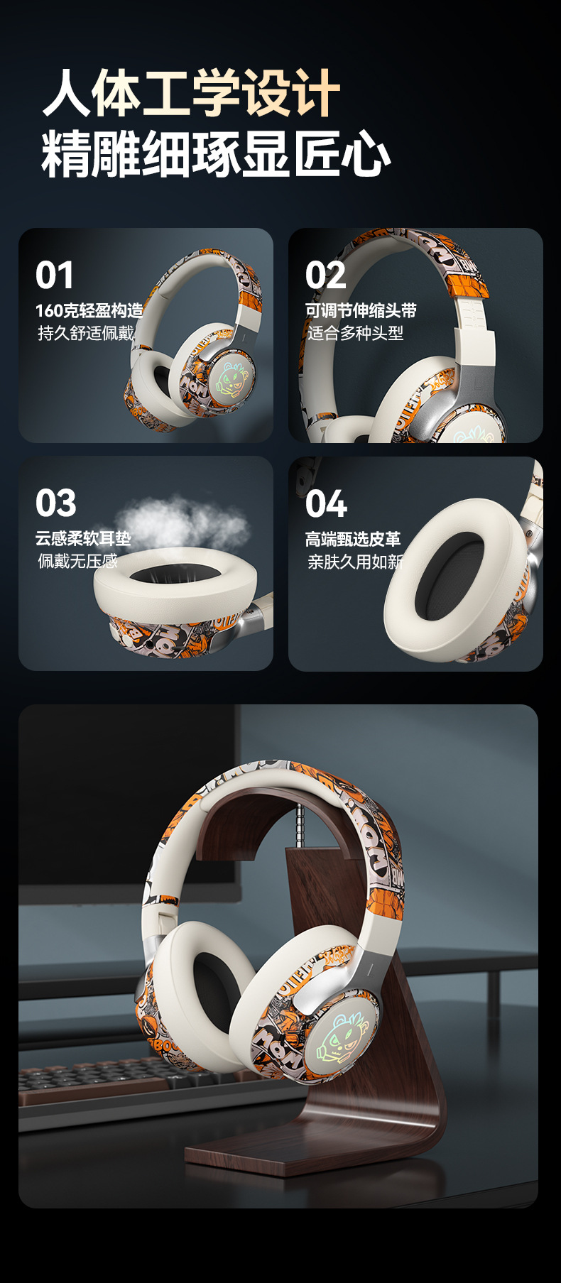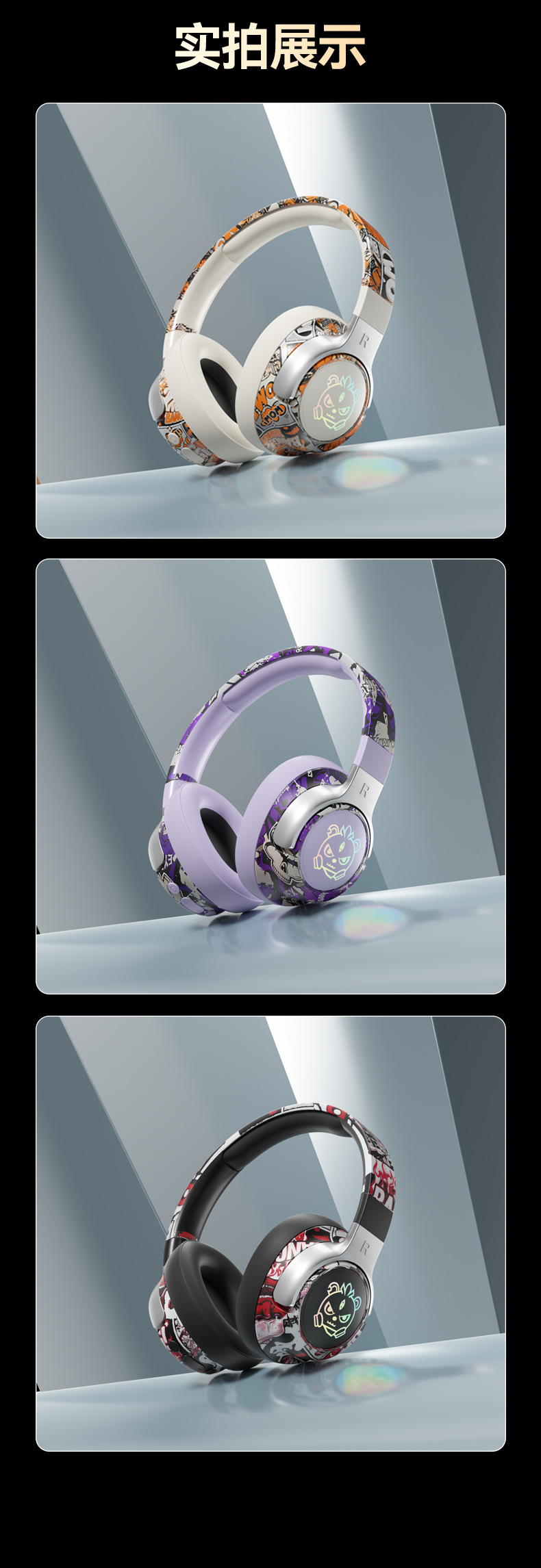 可旋转、可折叠,发光耳机