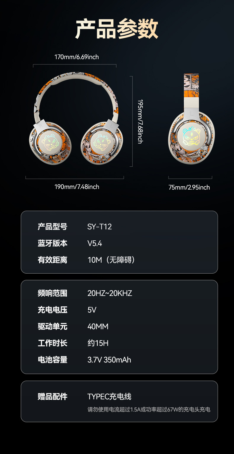 SY-T12发光耳机,立体棉