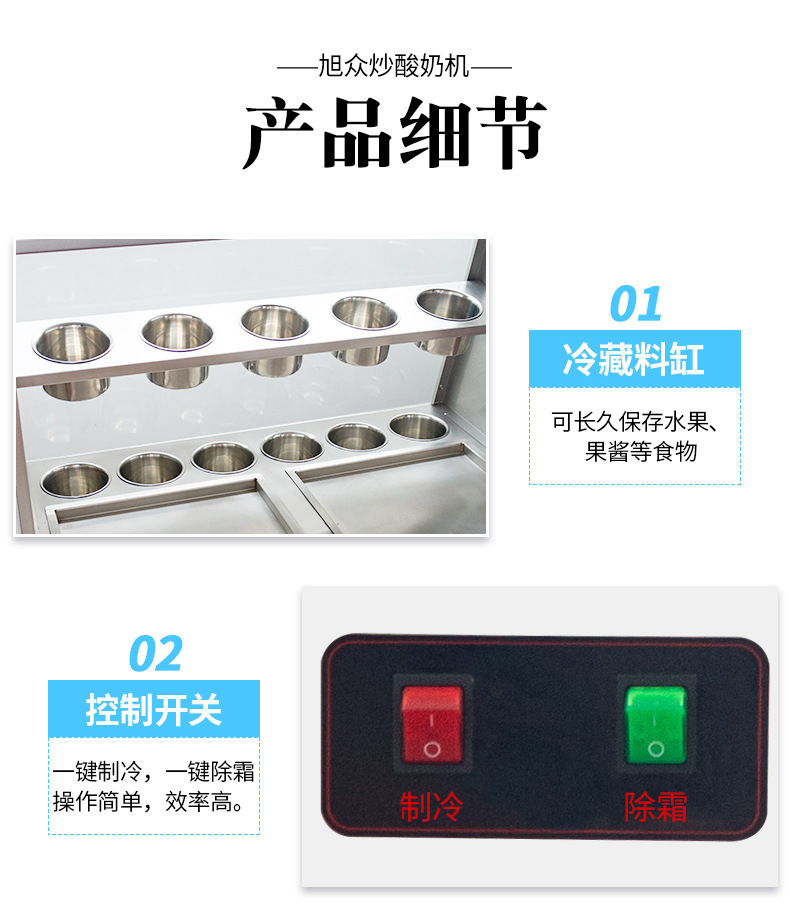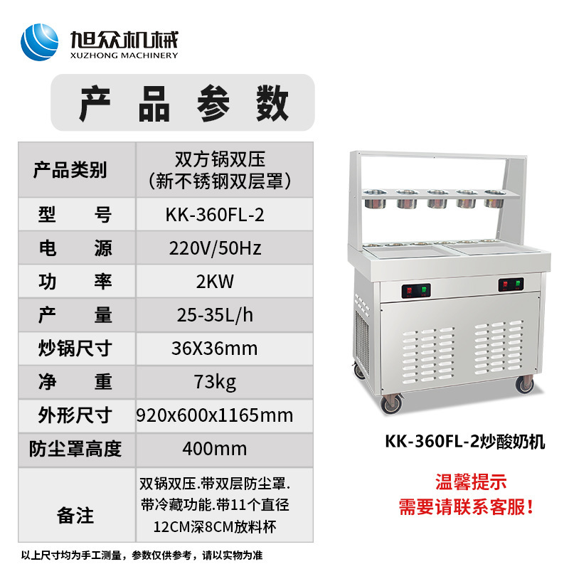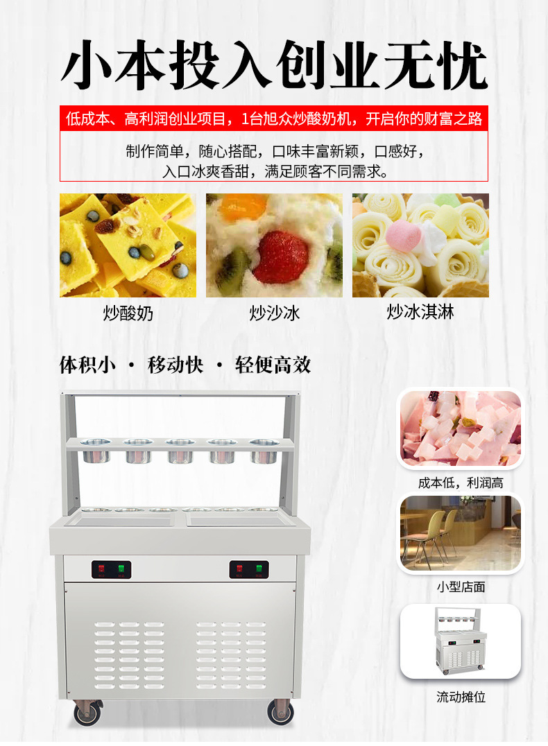 상업용 요거트 프라이팬 기계, 창업 노점 아이스 프라이팬 기계, 다기능 이중 냄비 및 이중 실린더 아이스 프라이팬 기계, Nanjing Xuzhong