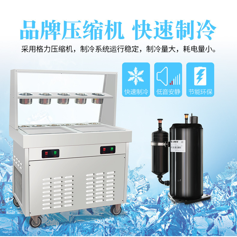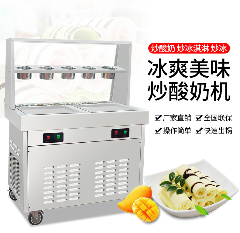 상업용 요거트 프라이팬 기계, 창업 노점 아이스 프라이팬 기계, 다기능 이중 냄비 및 이중 실린더 아이스 프라이팬 기계, Nanjing Xuzhong스토어 가기