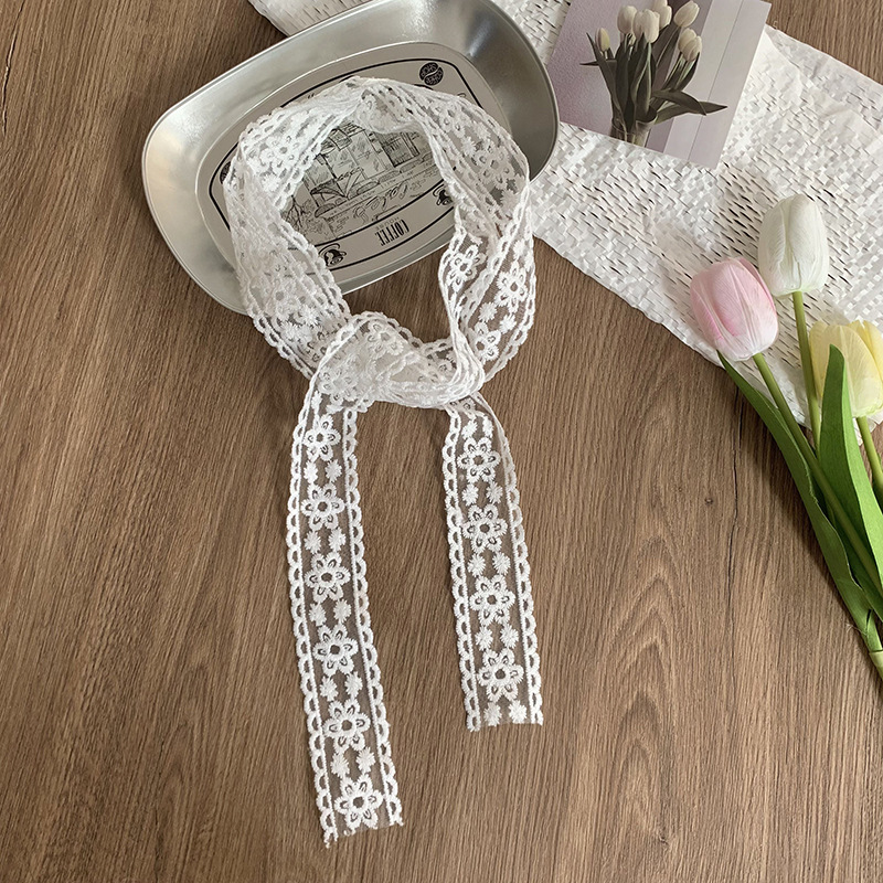 레이스 실크 스카프 고급 봄과 여름 다양한 장식 리본 헤드 스카프 헤어 밴드 다기능 벨트 타이 백 리본
