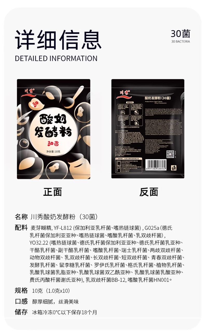 Chuanxiu 요구르트 발효 박테리아 30 박테리아 유산균 비피더스균 프로바이오틱스 가정용 건조 요구르트 발효 분말스토어 가기