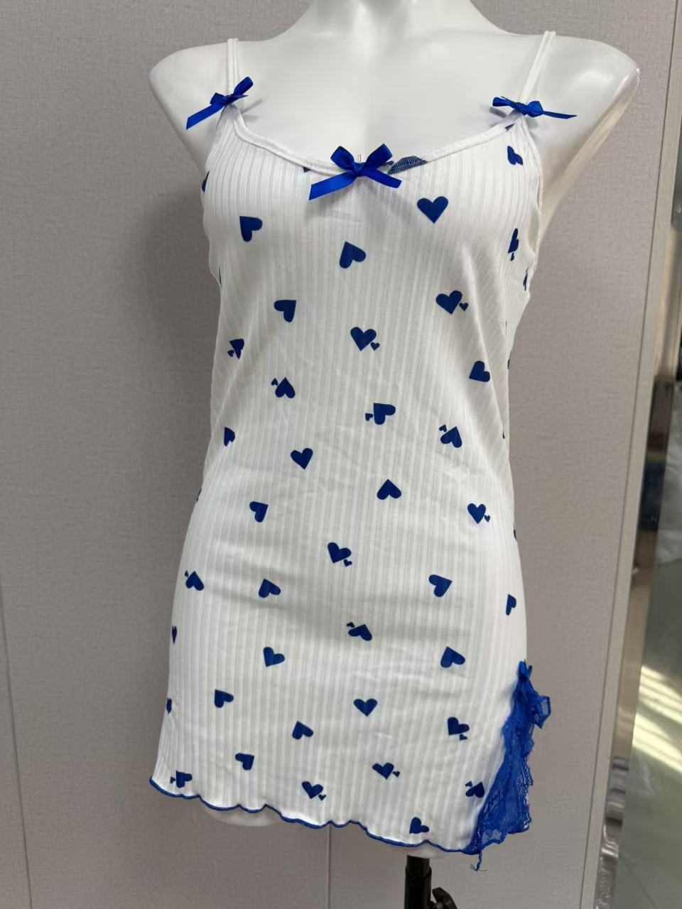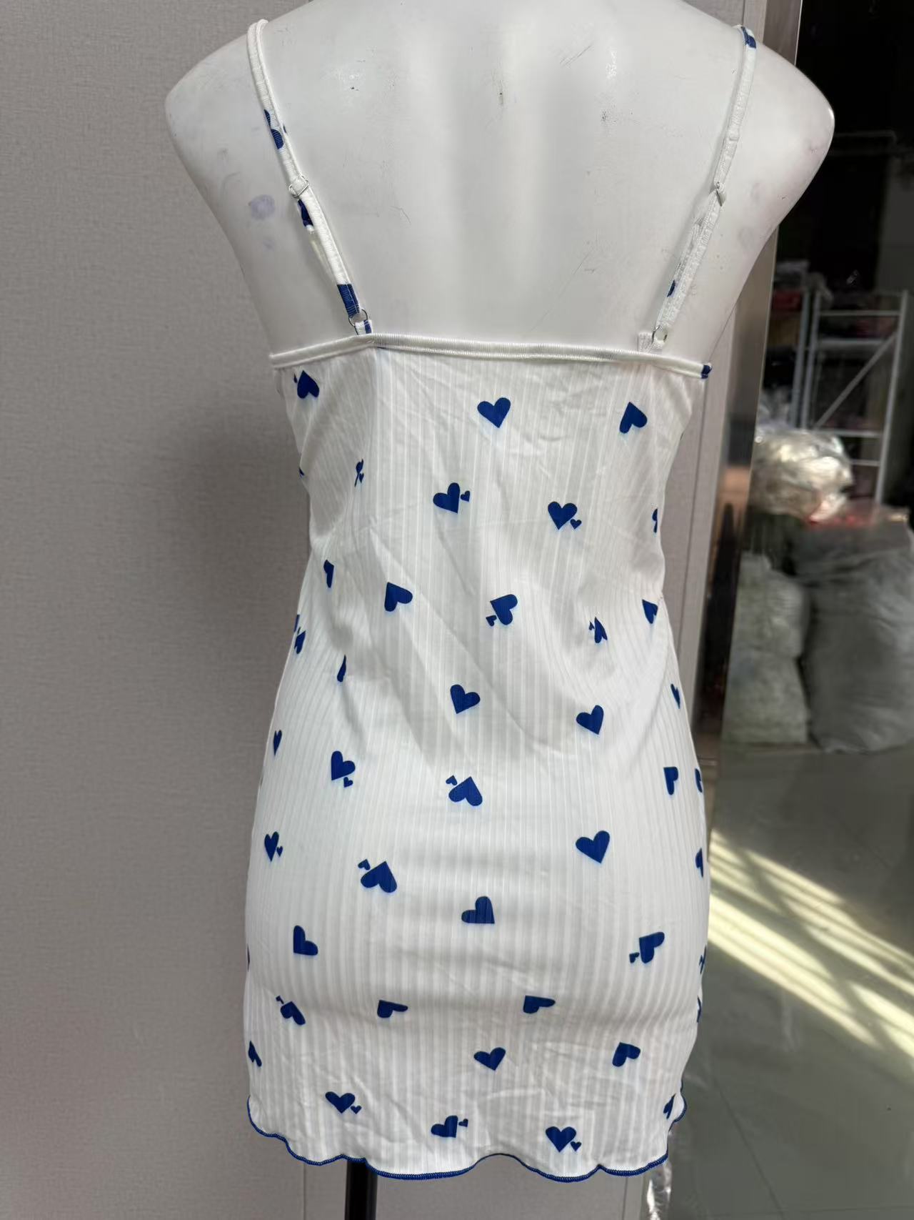 2024 Amazon AliExpress 신제품 하트 모양의 인쇄 된 대비 홈 의류 분할 레이스 슬립 스커트스토어 가기