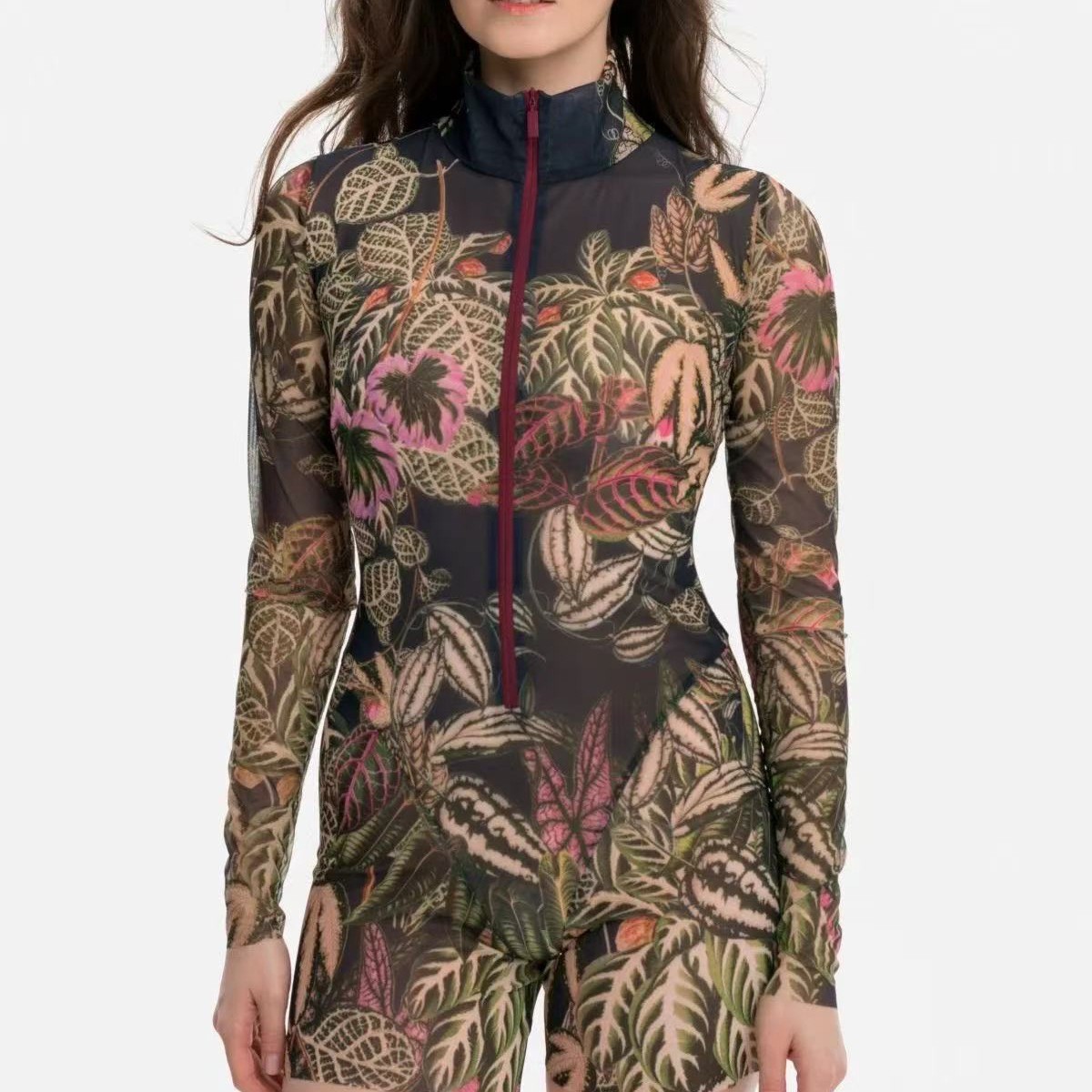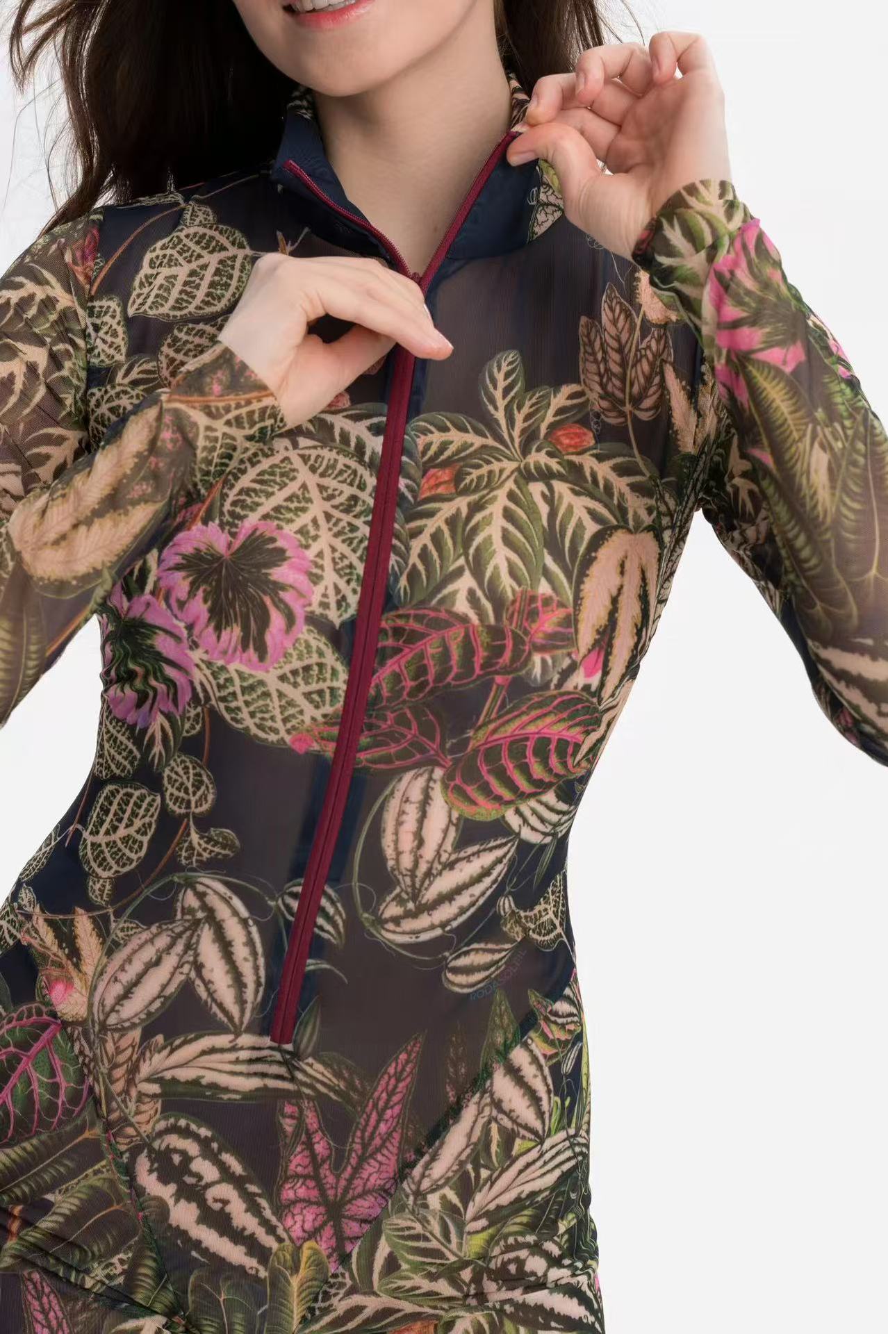 러시아 인쇄 섹시한 원피스 서핑 슈트 아마존 긴 소매 수영복 크로스 보더 오존 복서 수영복 여성