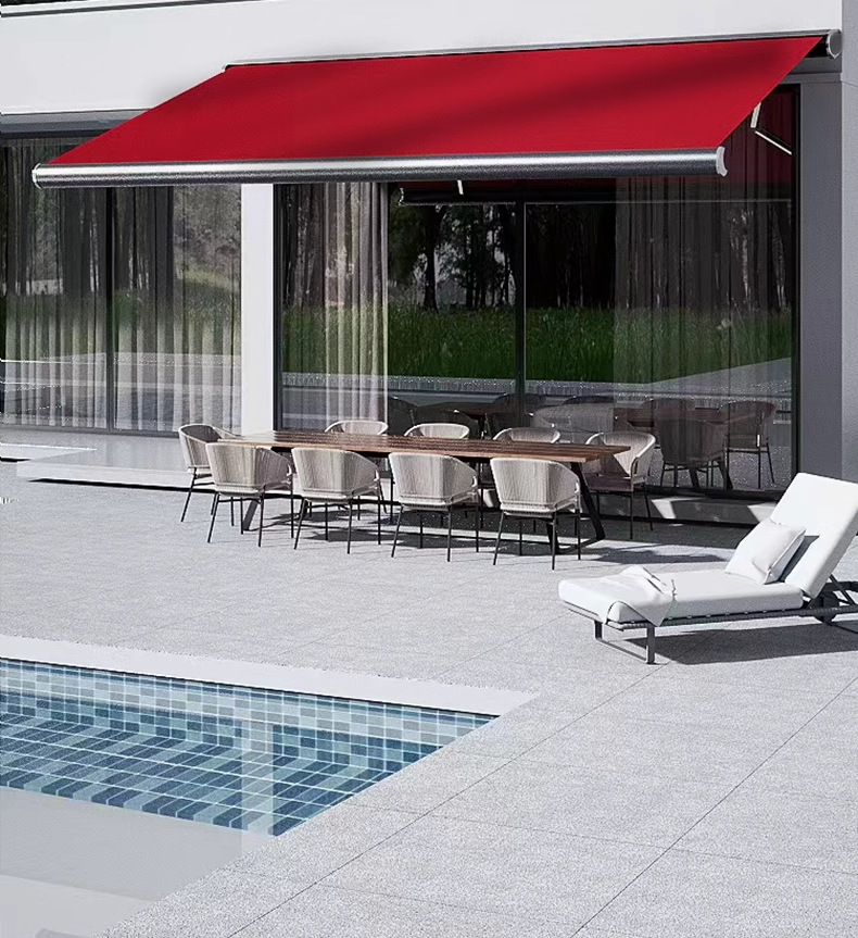 국경 간 공장 직판 전동 리모컨 접이식 텔레스코픽 차양막 빌라 차양막 정원 야외 차양막