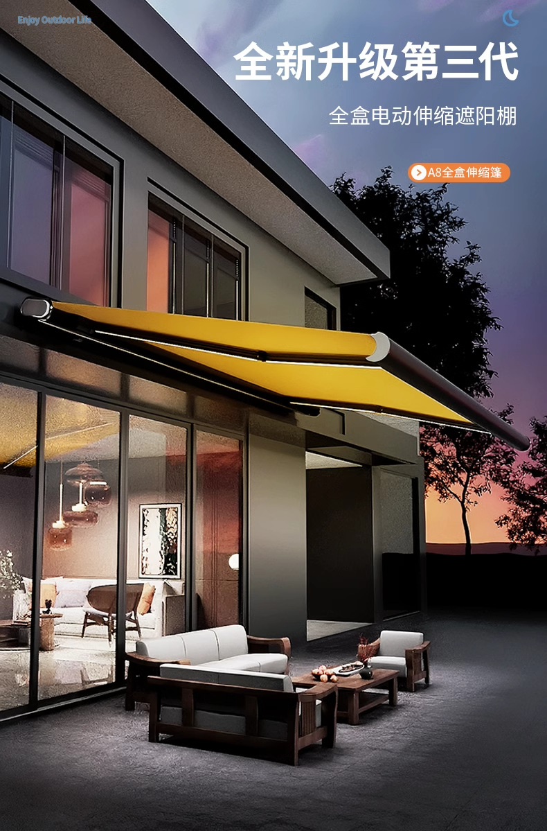 국경 간 공장 직판 전동 리모컨 접이식 텔레스코픽 차양막 빌라 차양막 정원 야외 차양막스토어 가기