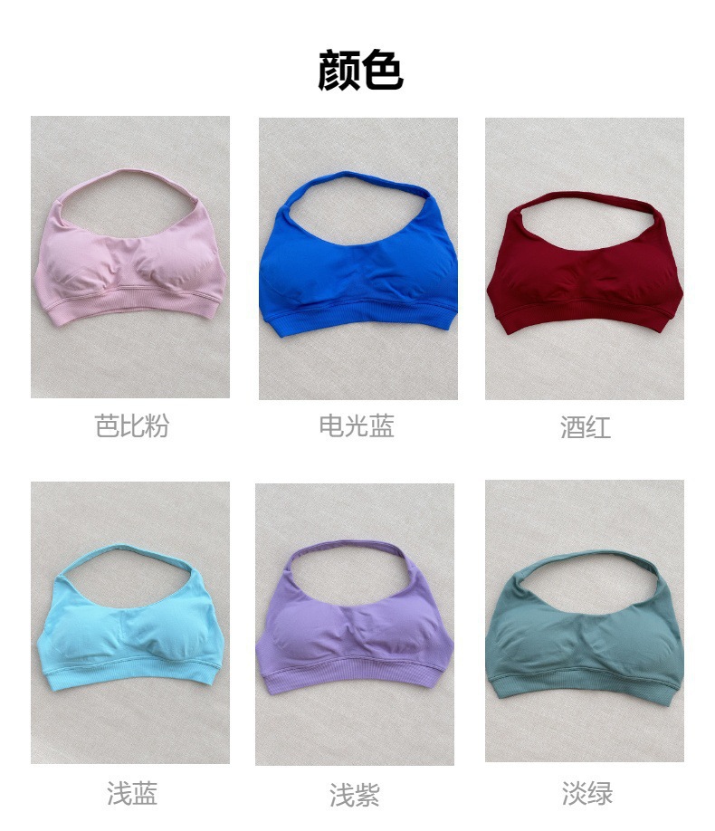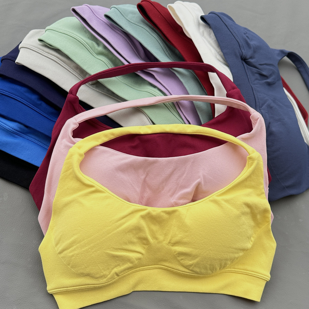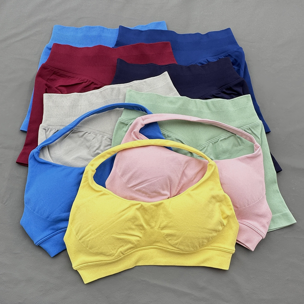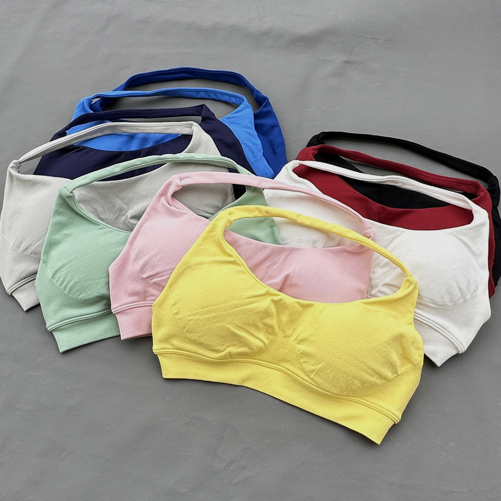 국경 간 원활한 피트니스 속옷 스포츠 야외 속건성 홀터넥 브래지어 여성용 고탄성 섹시한 나일론 가슴 패드 재고 있음