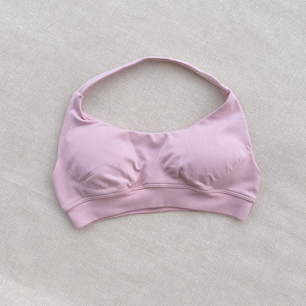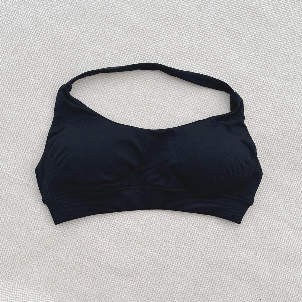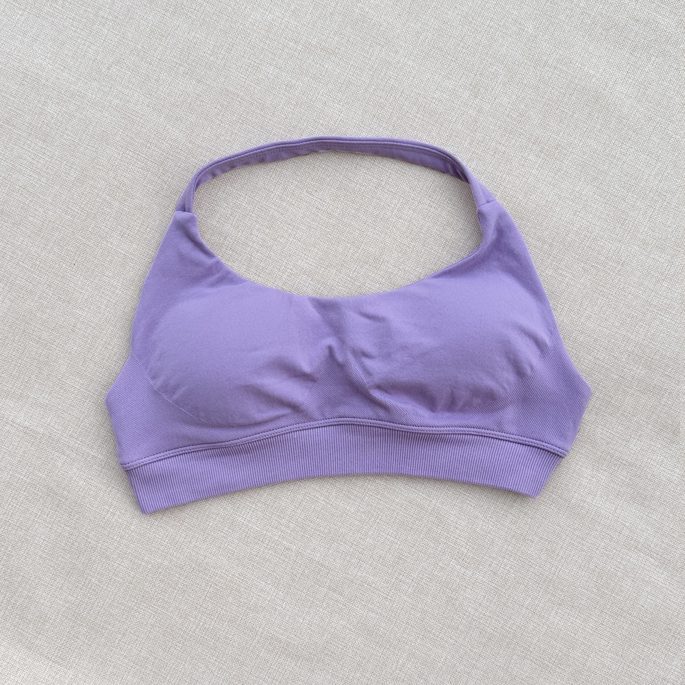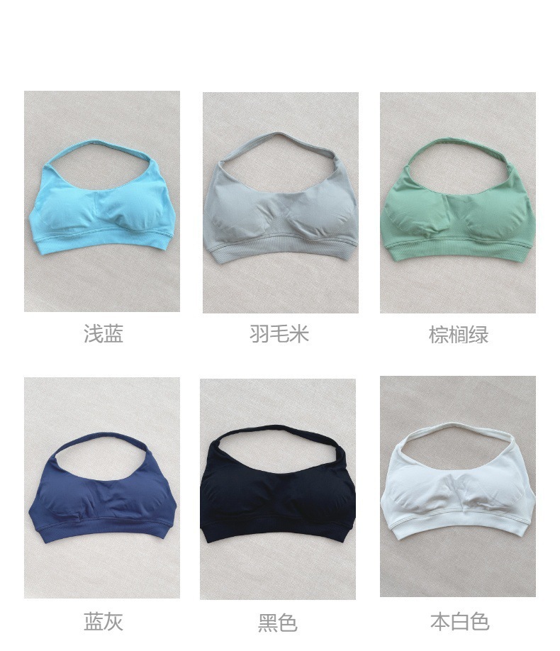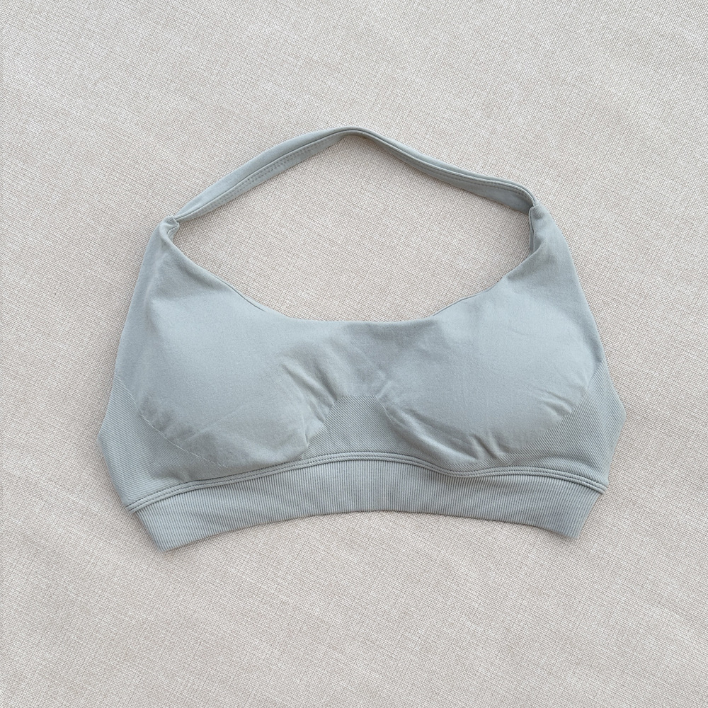 국경 간 원활한 피트니스 속옷 스포츠 야외 속건성 홀터넥 브래지어 여성용 고탄성 섹시한 나일론 가슴 패드 재고 있음