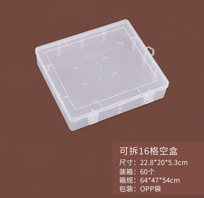 탈착식 16칸 PP 플라스틱 상자 버클 커버 상자 문구 장난감 비디오 보관 상자 예비 부품 정리 포장 상자