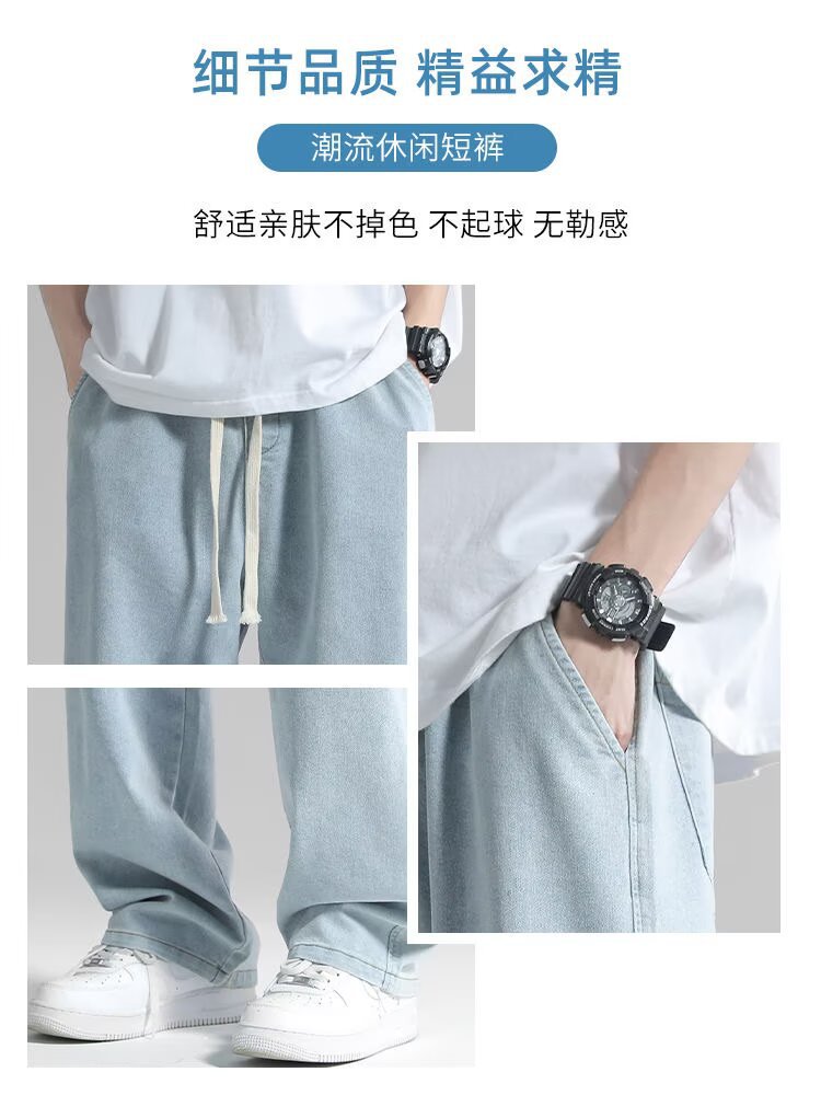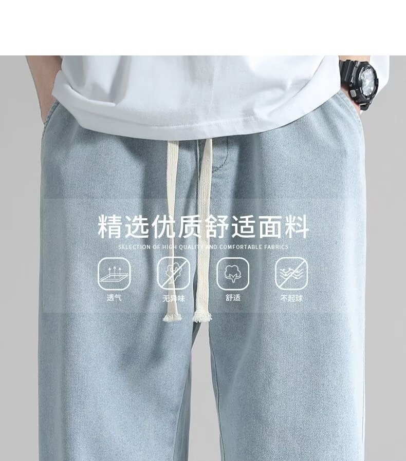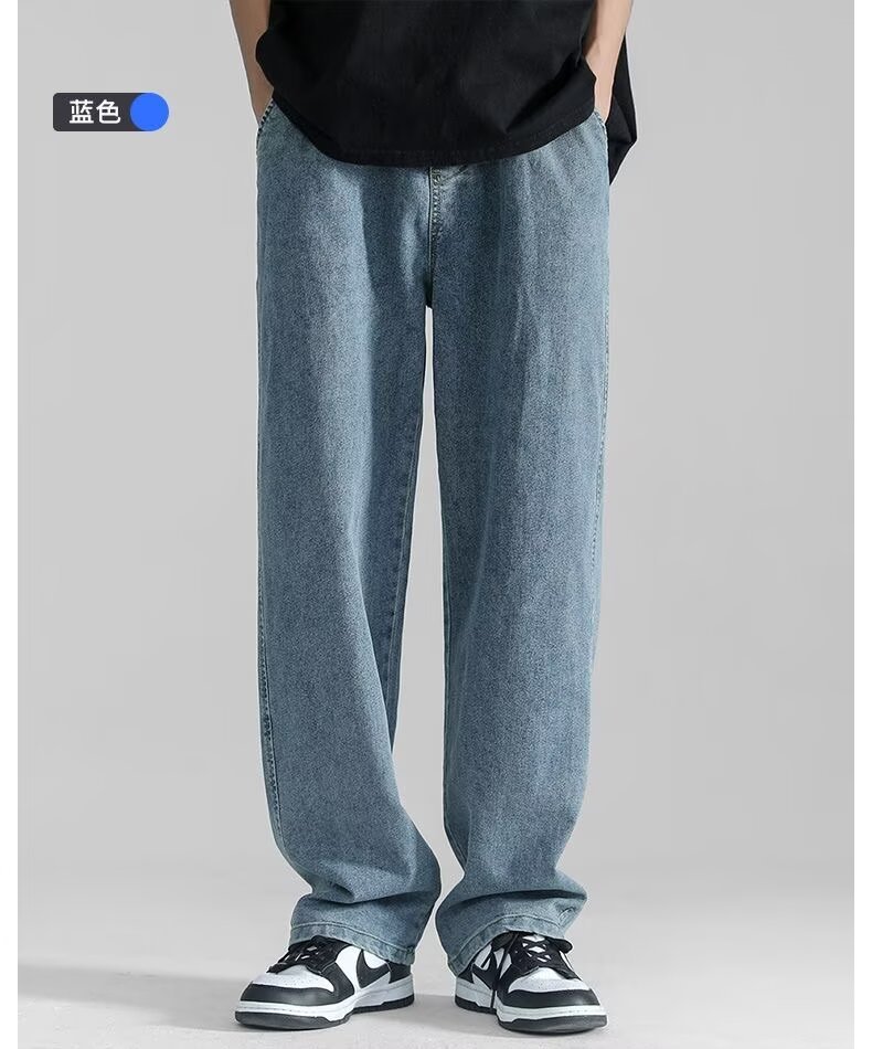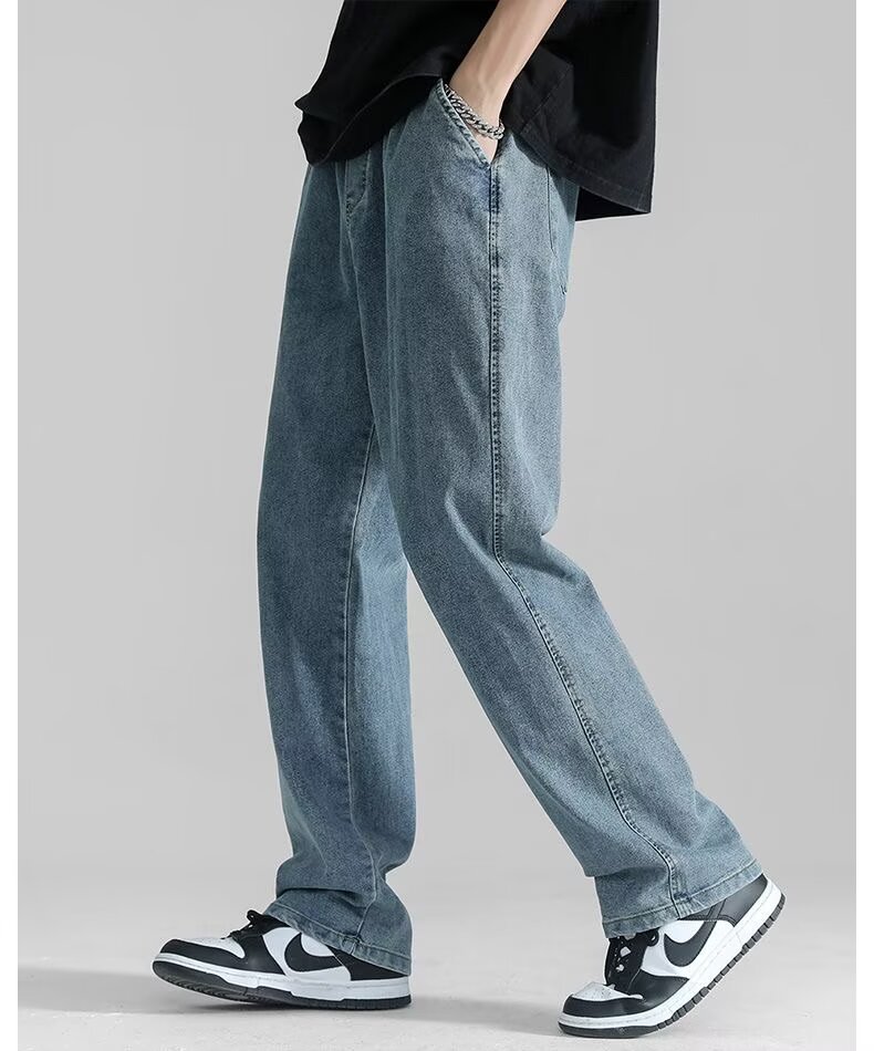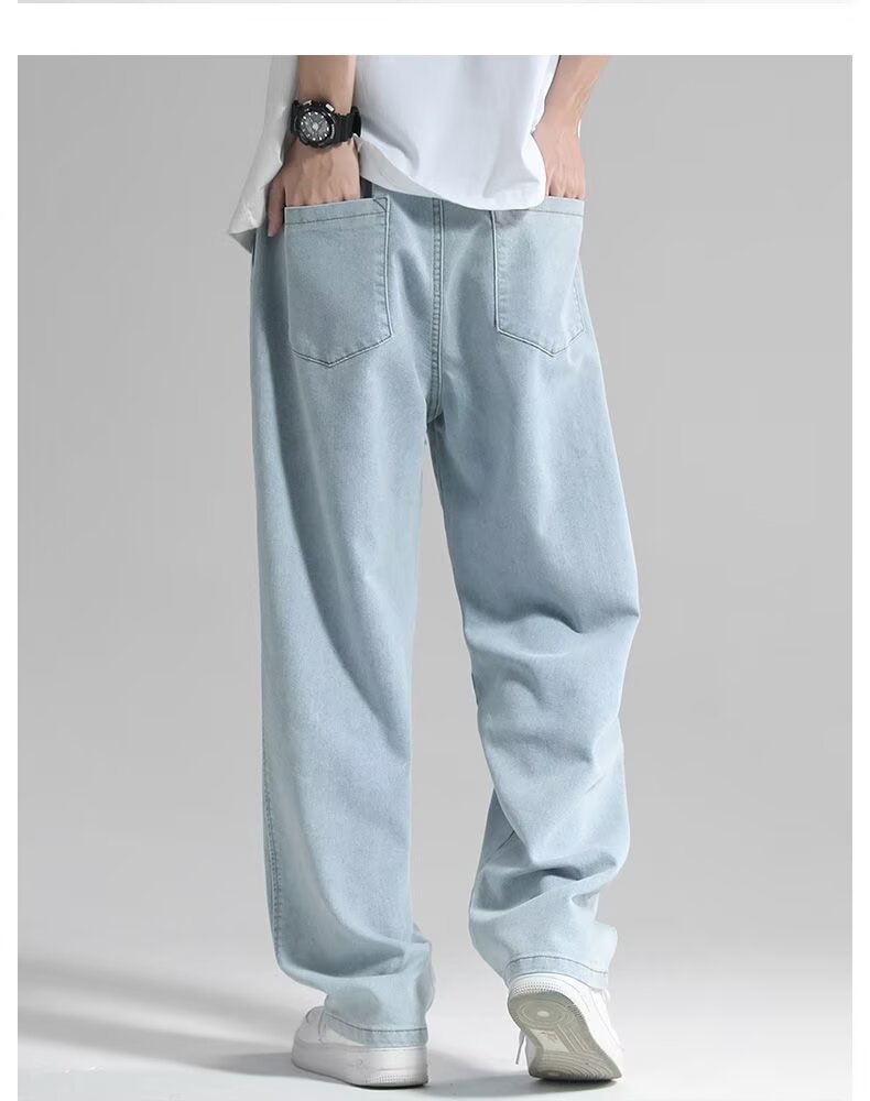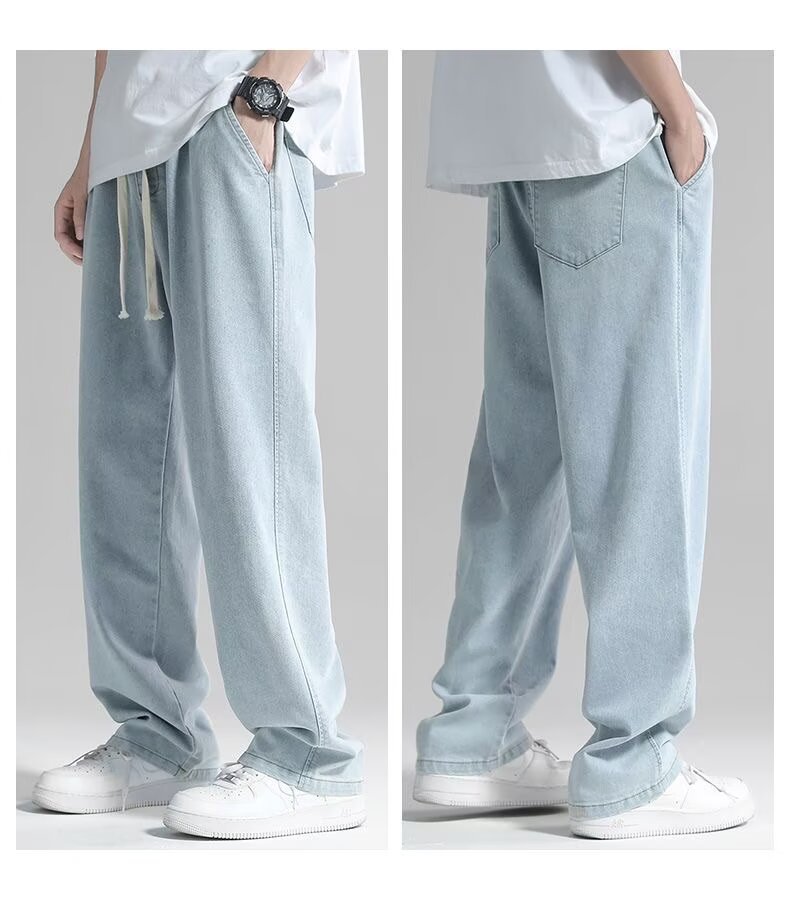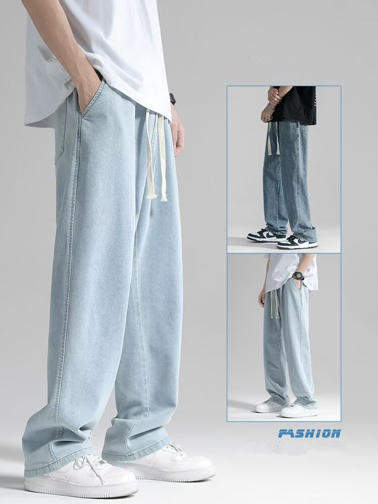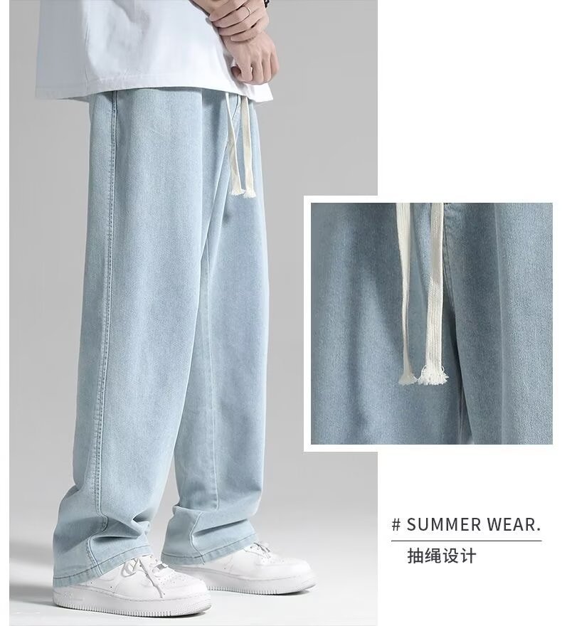 남성용 스트레이트 청바지 2025 여름 얇은 트렌디 브랜드 루즈하고 와이드 레그 드레이프 바닥 길이 바지 캐주얼 바지스토어 가기