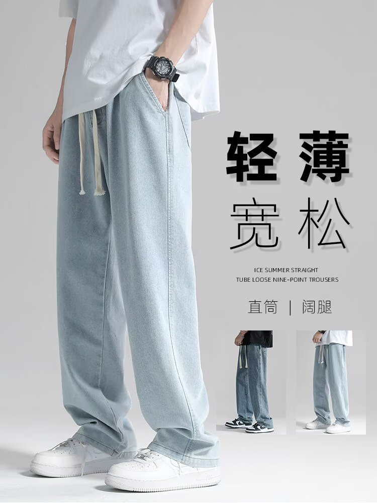 남성용 스트레이트 청바지 2025 여름 얇은 트렌디 브랜드 루즈하고 와이드 레그 드레이프 바닥 길이 바지 캐주얼 바지