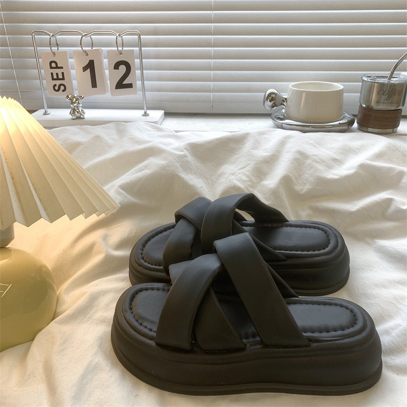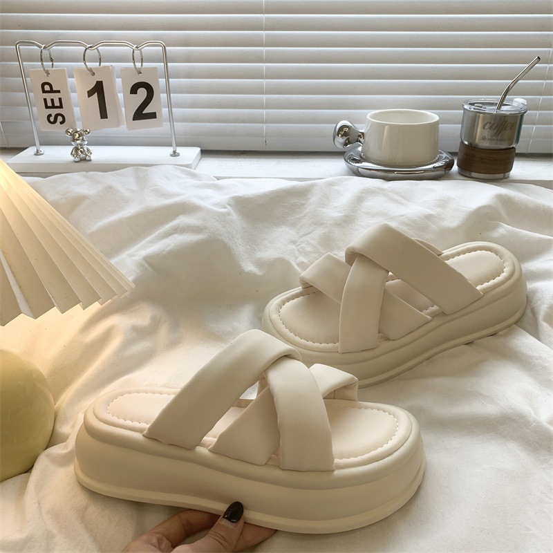 여성용 여름 아우터용 두꺼운 밑창 슬리퍼 2025 새로운 프랑스 패션 하이 엔드 요정 스타일 비치 샌들스토어 가기