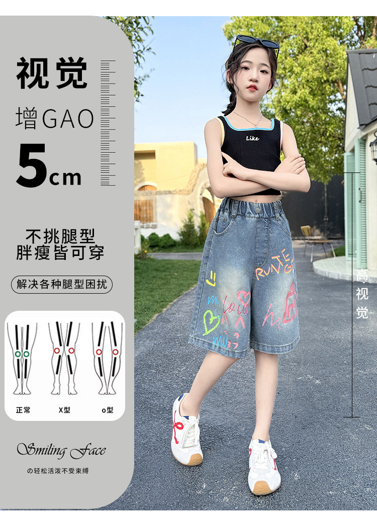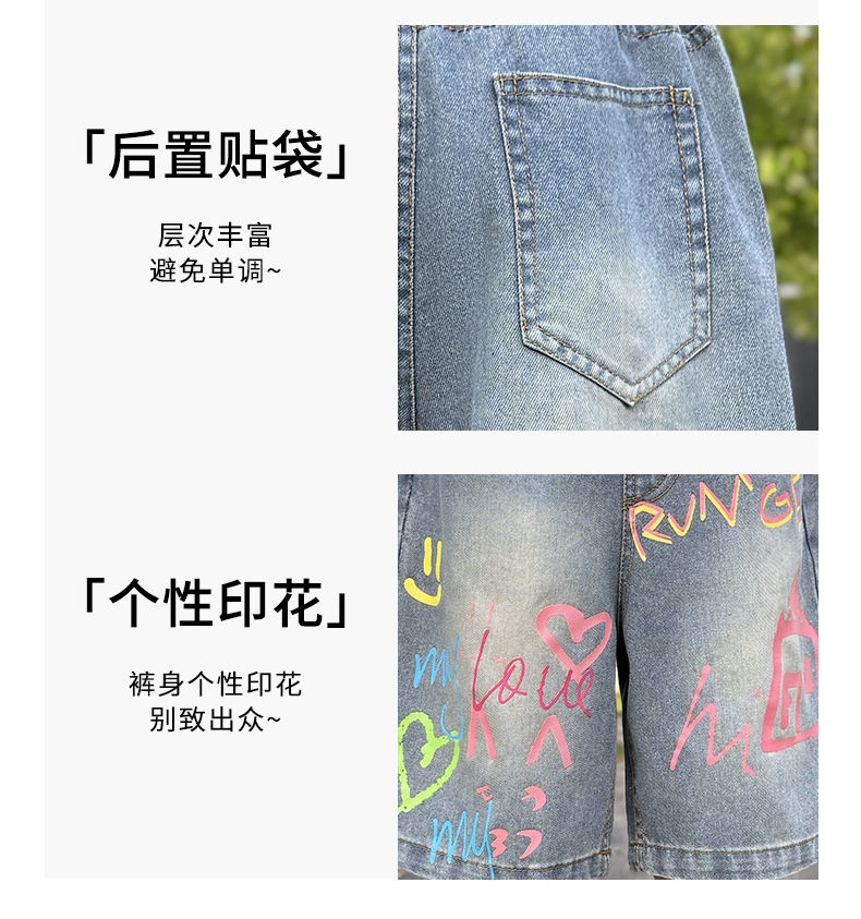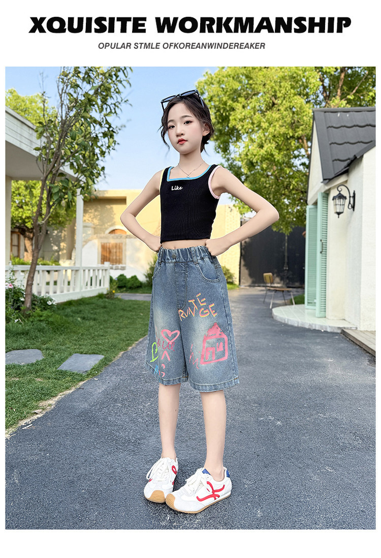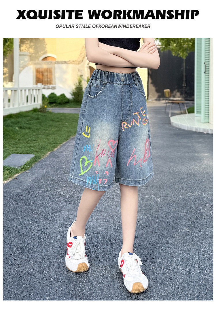소녀 낙서 데님 바지 2025 여름 새로운 어린이 느슨한 캐주얼 바지 아기 소녀 서양식 반바지스토어 가기