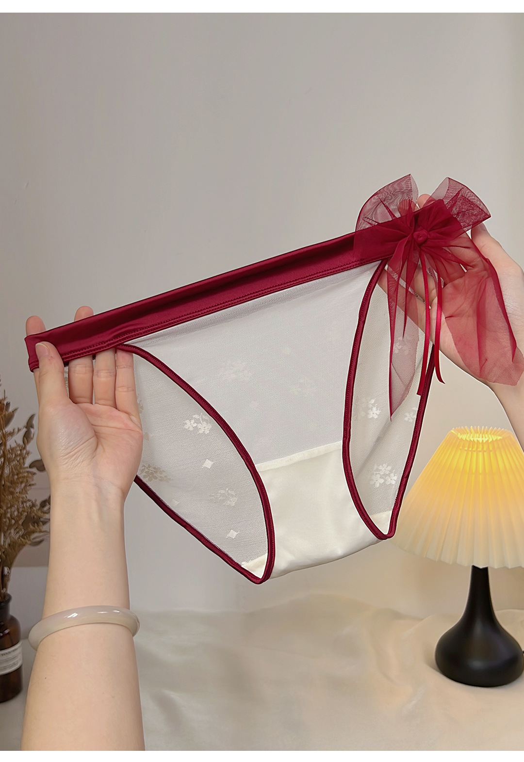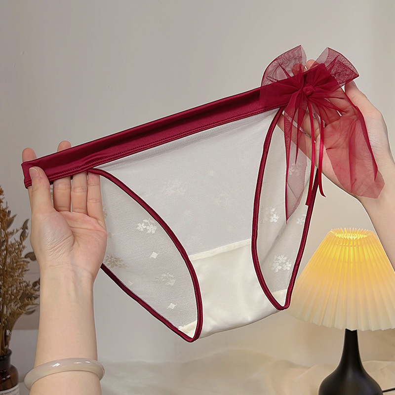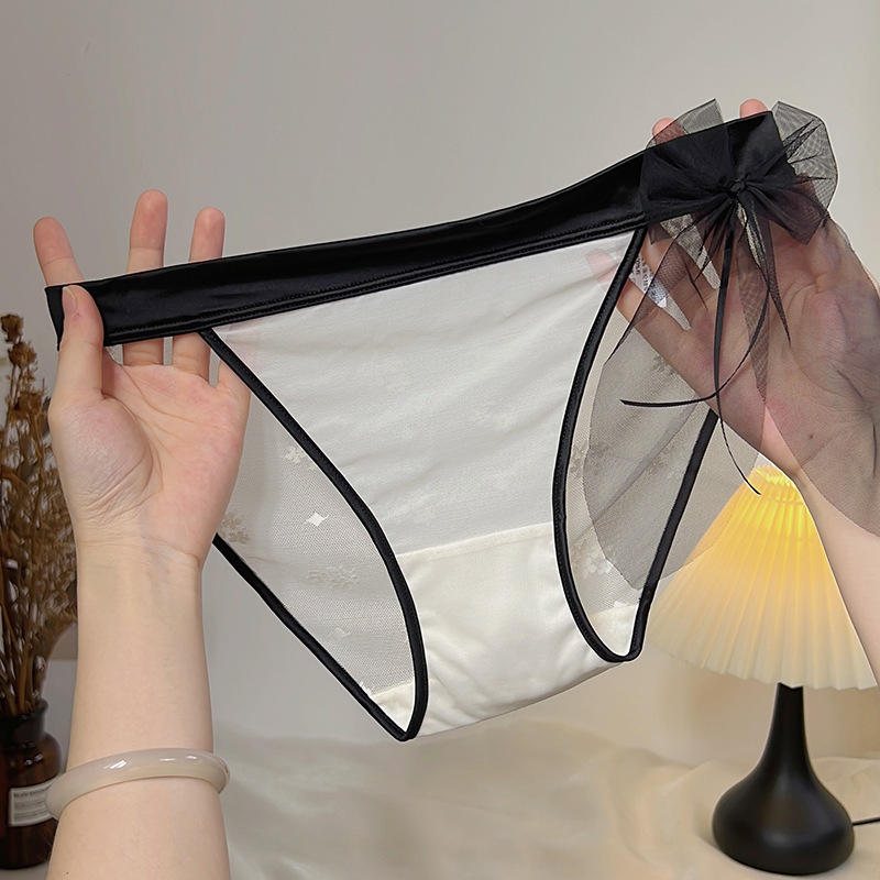 프랑스 소녀의 레이스 브리프 순수한 통기성 메쉬 활 레이스 엣지 아이스 실크 코튼 크로 치 팬츠 경량