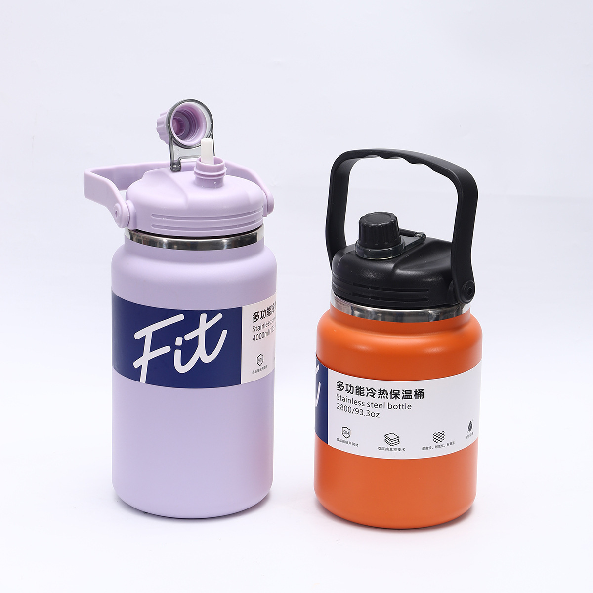 손잡이와 빨대가있는 대용량 크로스 보더 304 스테인레스 스틸 보온병 컵 야외 휴대용 스포츠 물병
