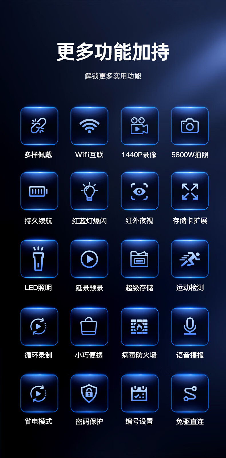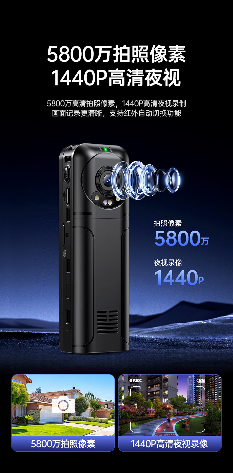 • 1440p 손떨림 방지 야간 투시경, 배터리 수명 10시간, 64G