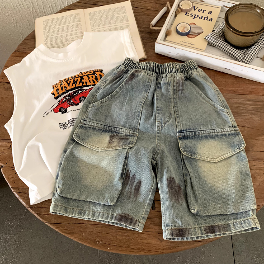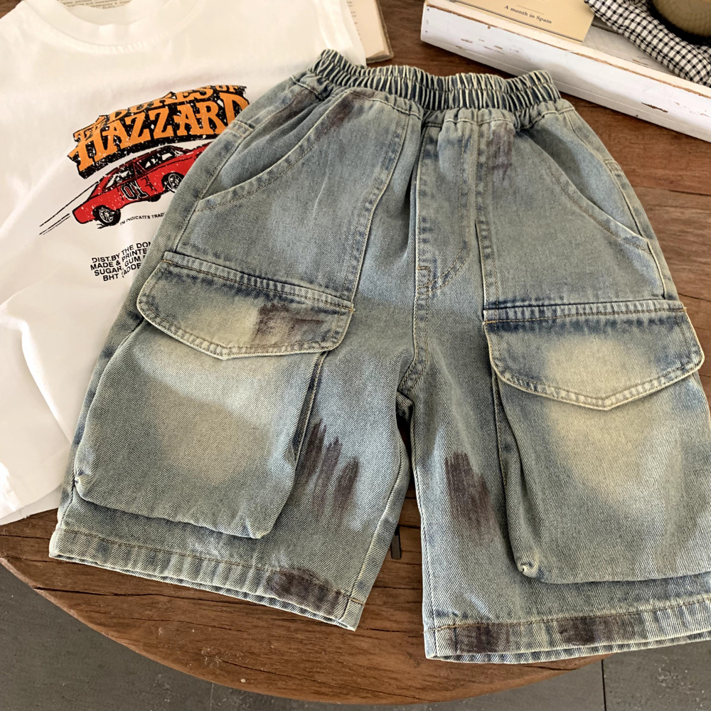 소년의 여름 청바지 얇은 작업 바지 어린이 여름 반바지 2025 새로운 아기 느슨한 카프리 바지스토어 가기