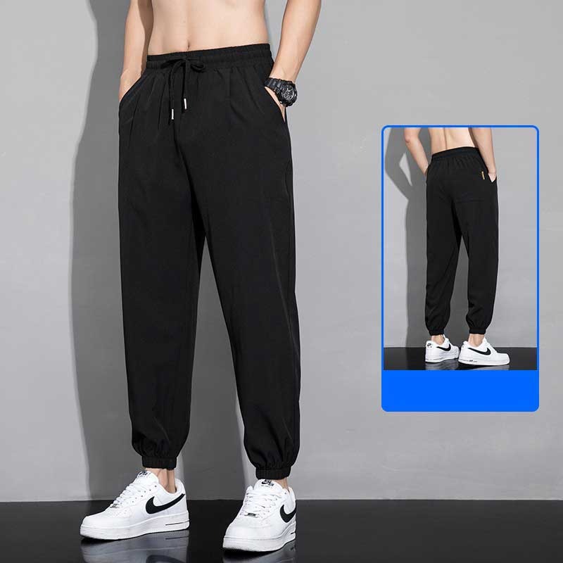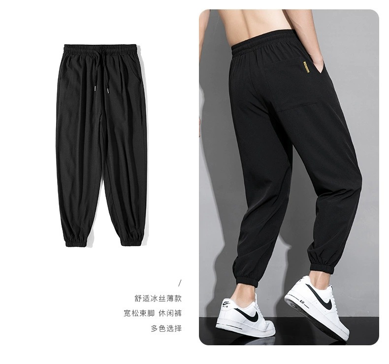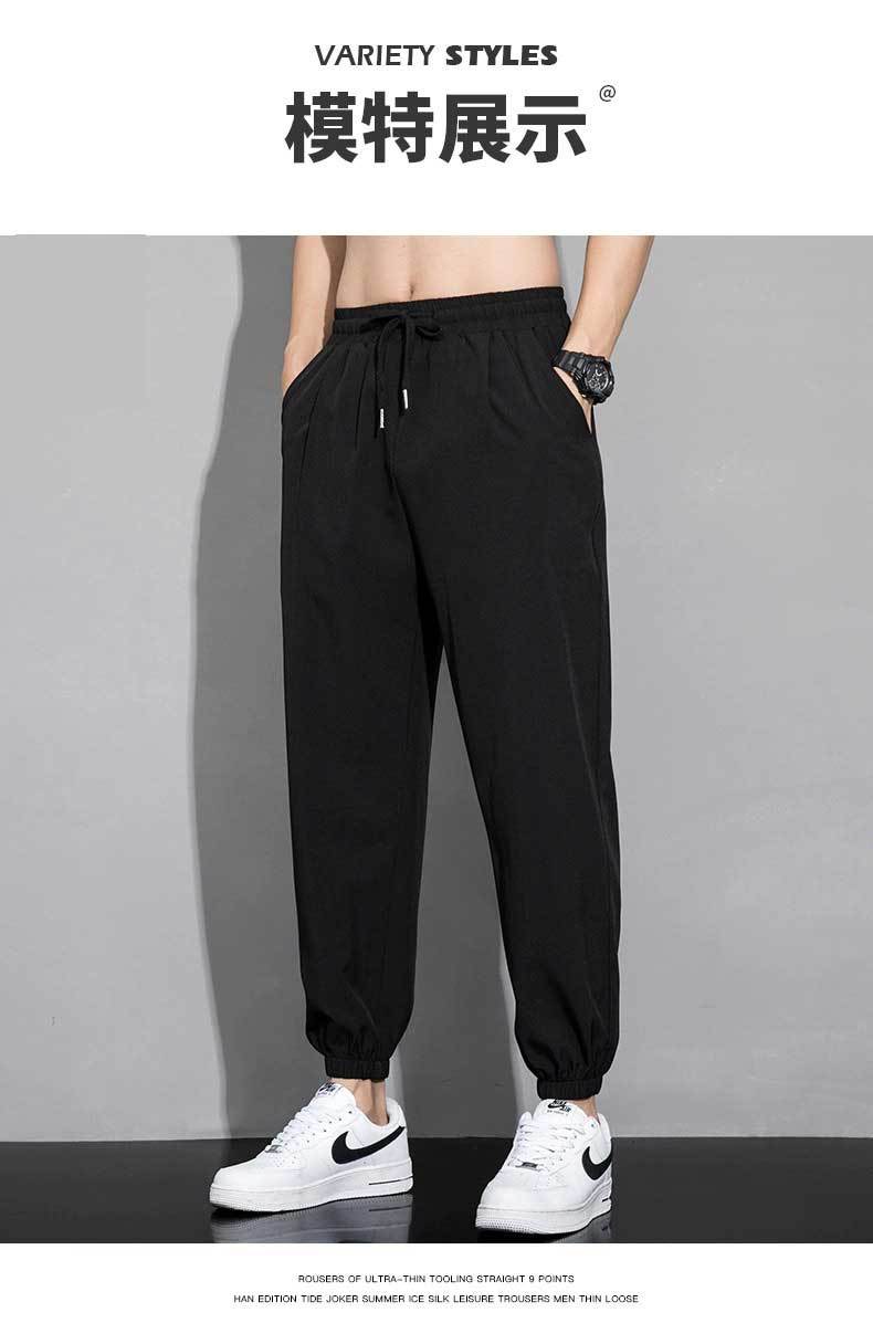 아이스 실크 팬츠 남성용 얇은 속건성 및 얼룩 방지 스웨트 팬츠 여름 캐주얼 루즈 남성용 하렘 팬츠 통기성 9부 팬츠스토어 가기