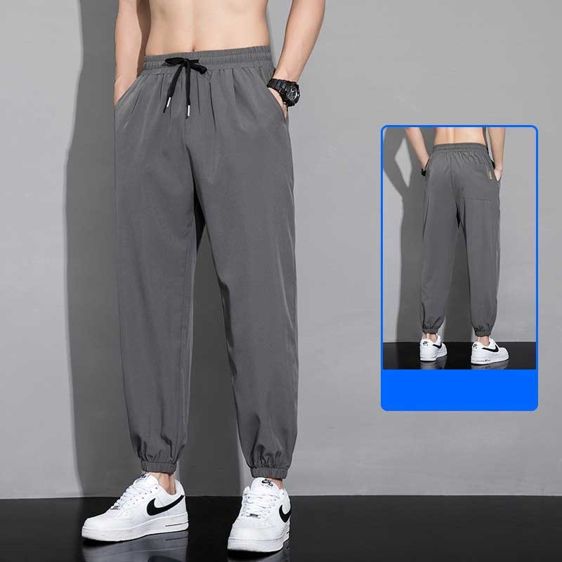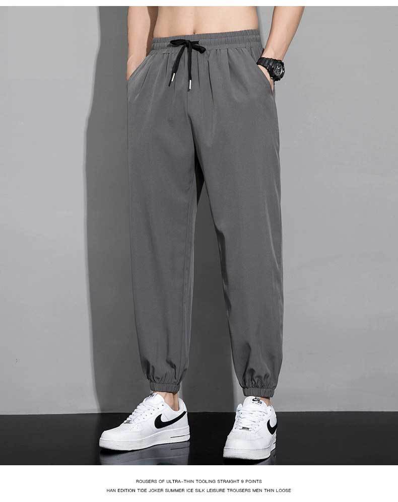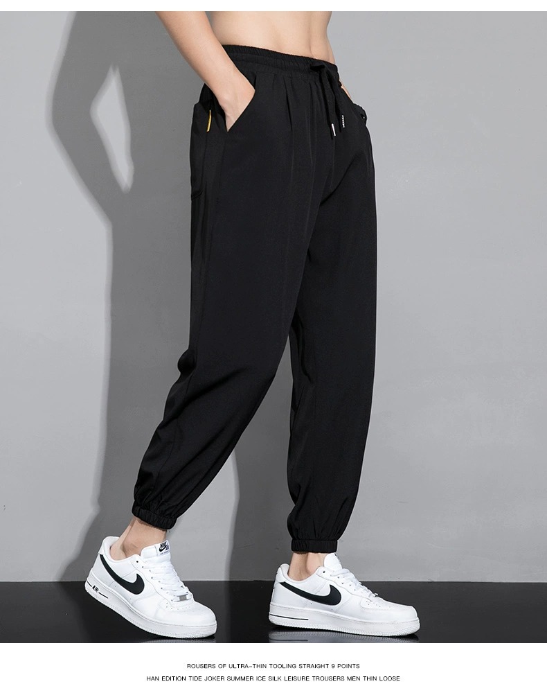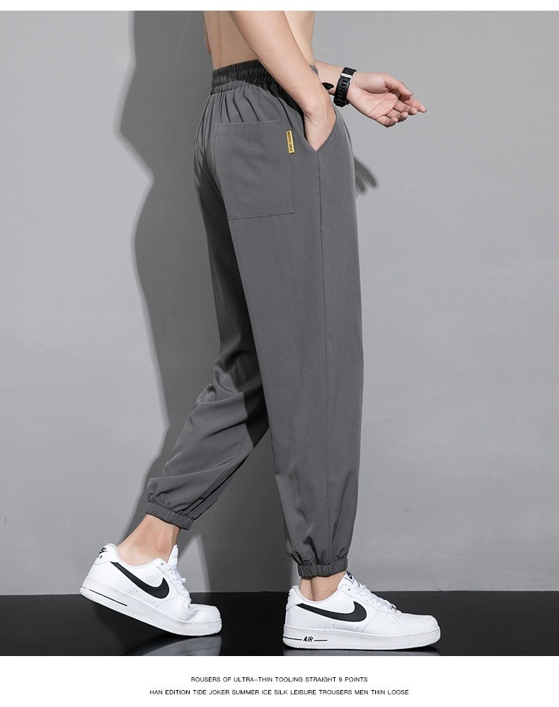 아이스 실크 팬츠 남성용 얇은 속건성 및 얼룩 방지 스웨트 팬츠 여름 캐주얼 루즈 남성용 하렘 팬츠 통기성 9부 팬츠