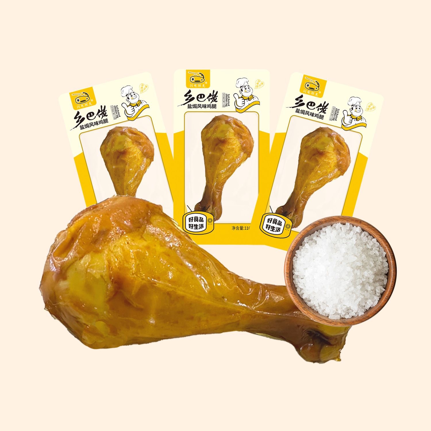 110克乡巴佬鸡腿盐焗味鸡腿肉类零食批发即食卤味鸡腿琵琶腿批发