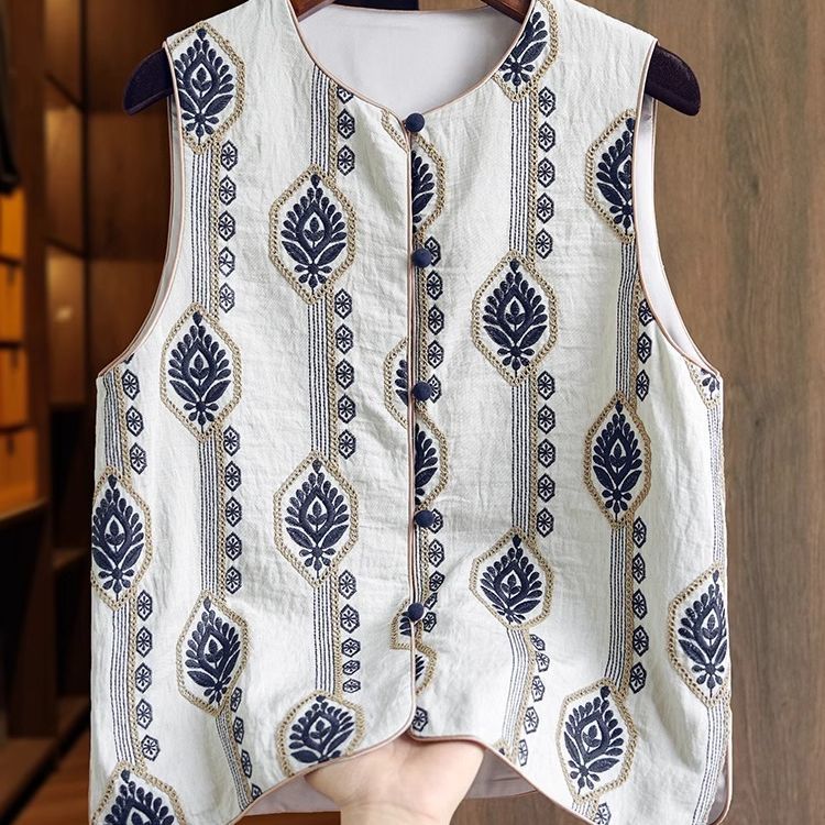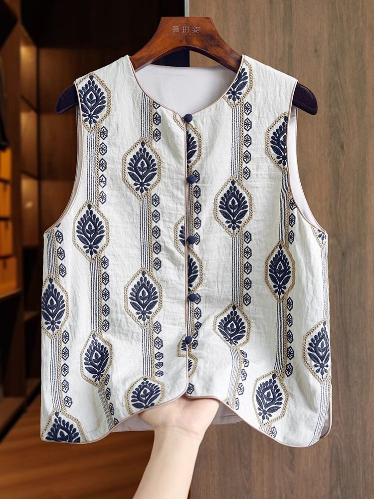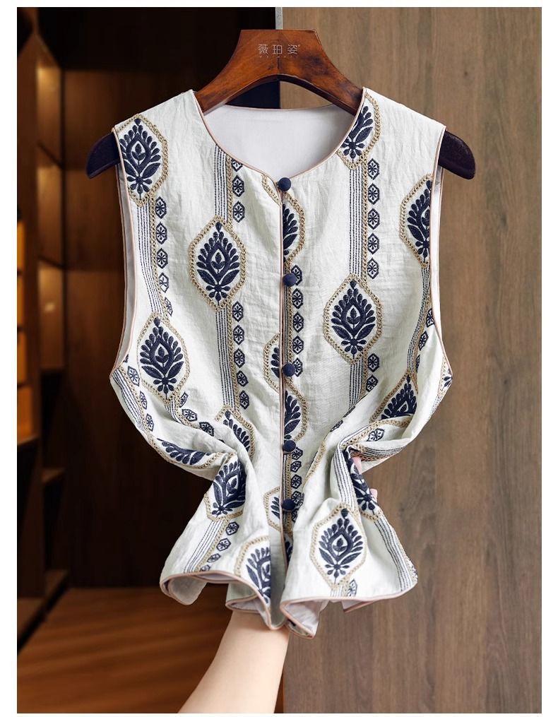 빈티지 예술 중공업 자수 올드 머니 스타일 조끼 여성 2025 년 여름 독특한 세련된 서양 스타일 조끼 민소매 탑