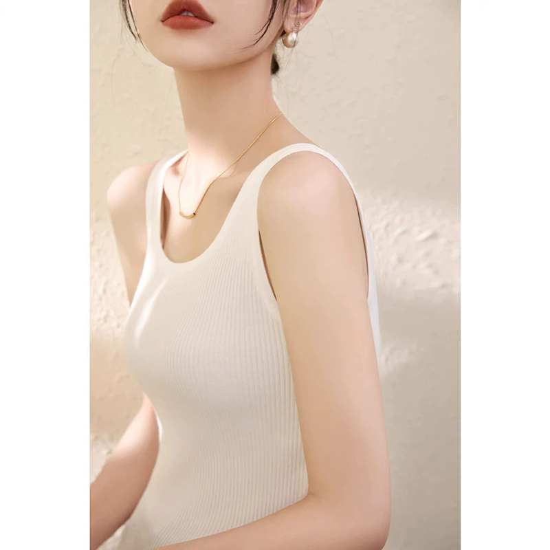 플러스 사이즈 아이스 실크 카미솔 여성 세트 통통녀 여름을위한 우아한 니트 민소매 티셔츠 탑베이스 셔츠스토어 가기