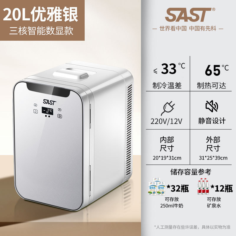 • [20L 트리플 코어 디지털 디스플레이 실버] 업그레이드된 유리 도어 자동차 및 가정용 이중 용도 - 온도 조절 가능