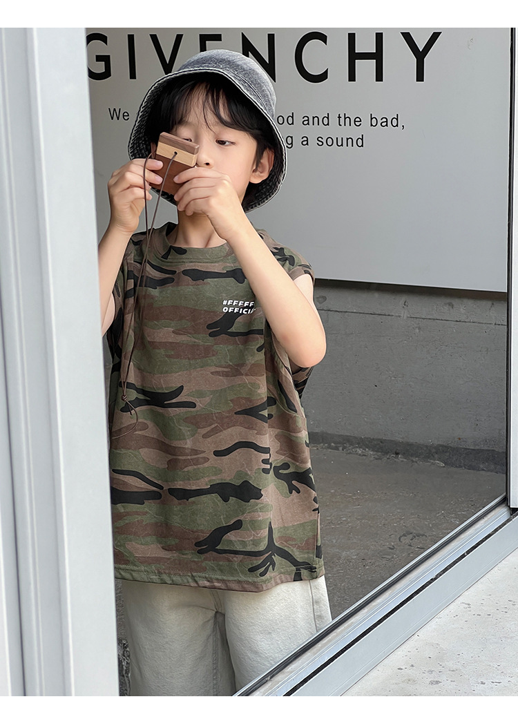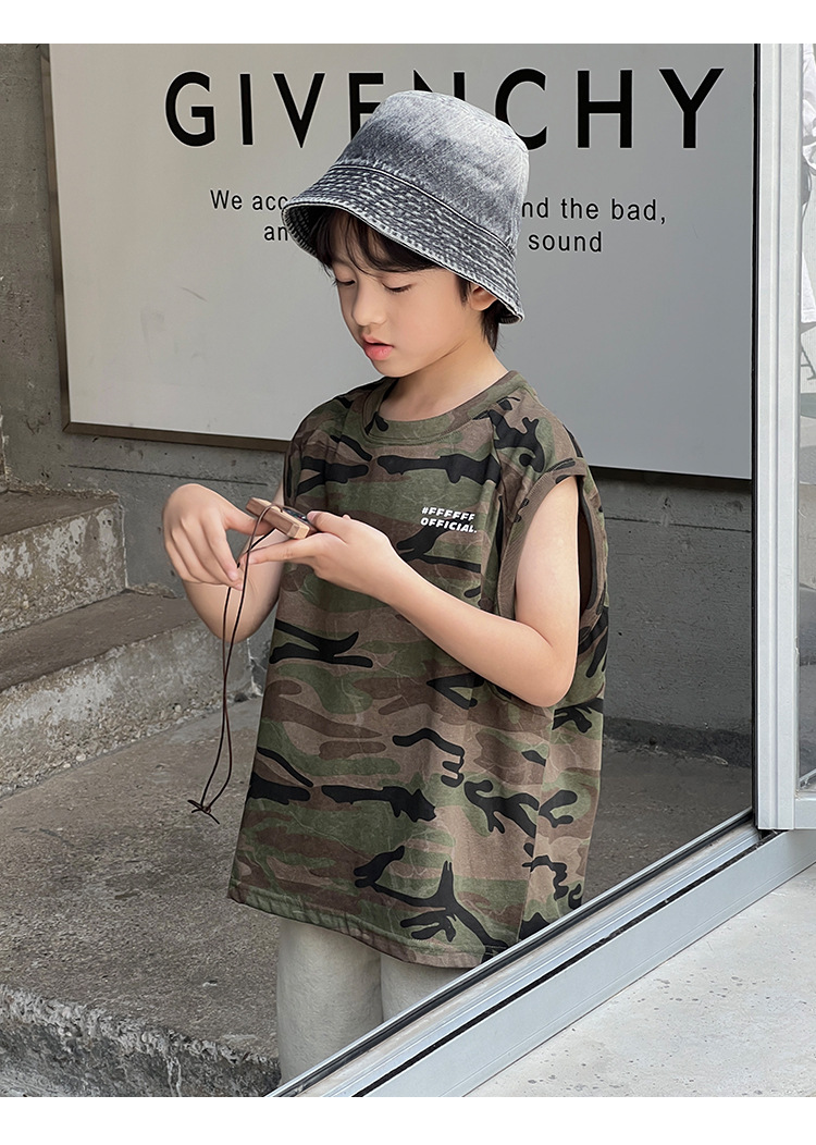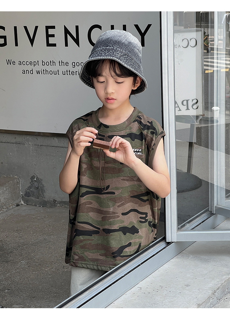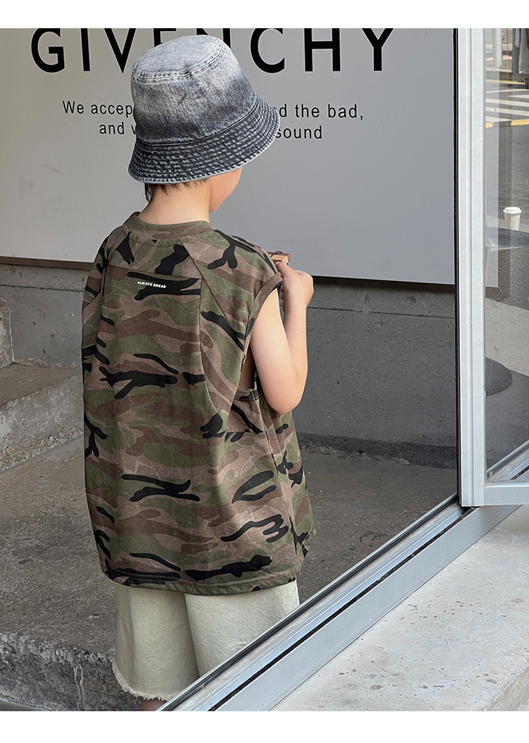 2026년 여름 트렌드 신상품 남아용 한국 스타일 루즈핏 캐주얼 민소매 패션 카모플라주 멋진 풀오버 조끼스토어 가기