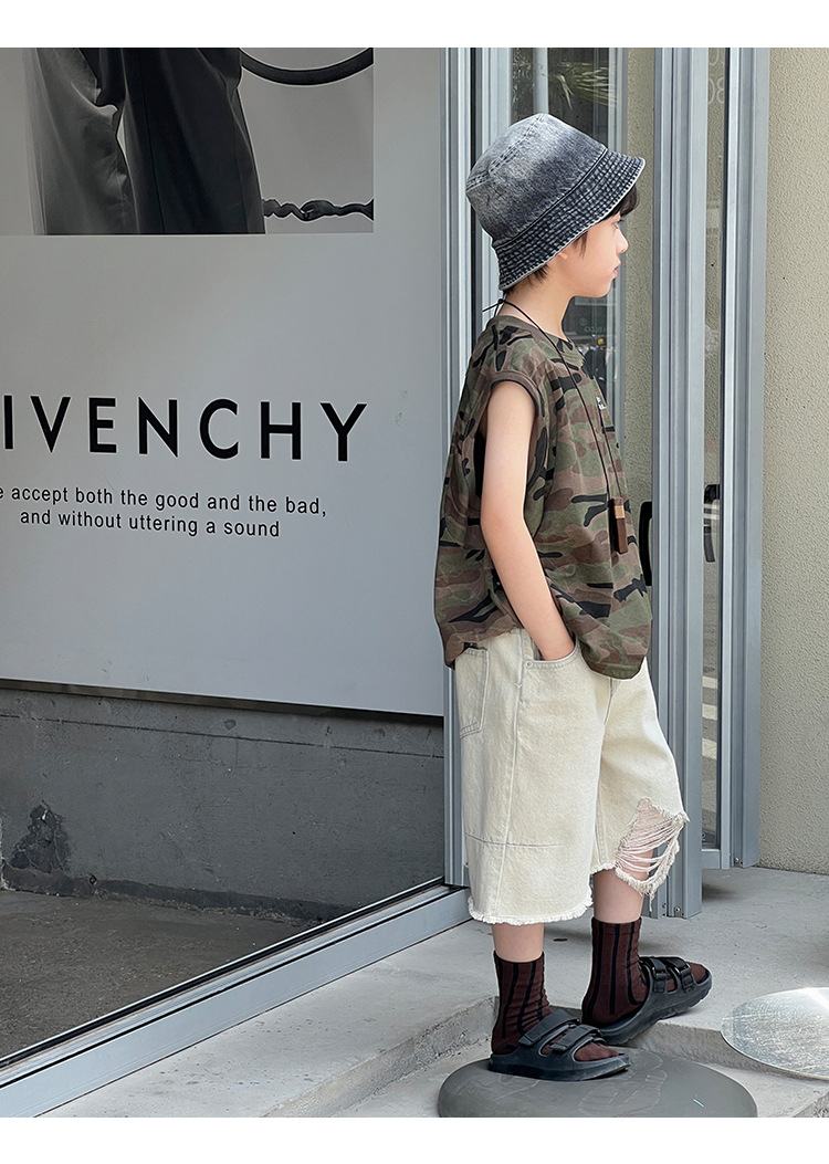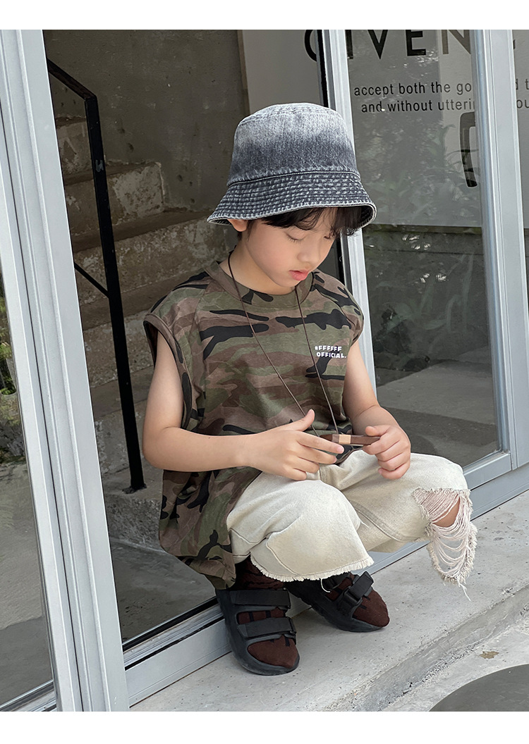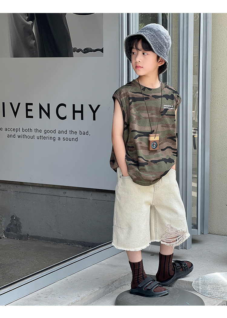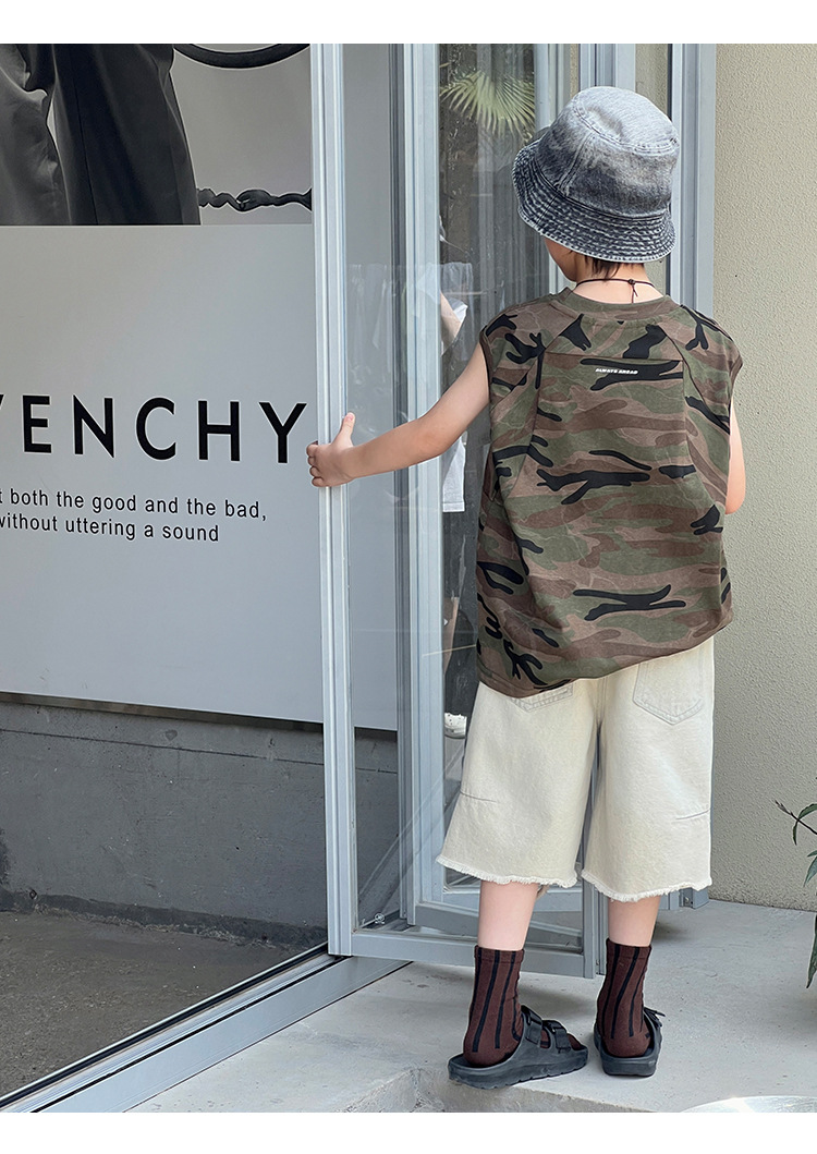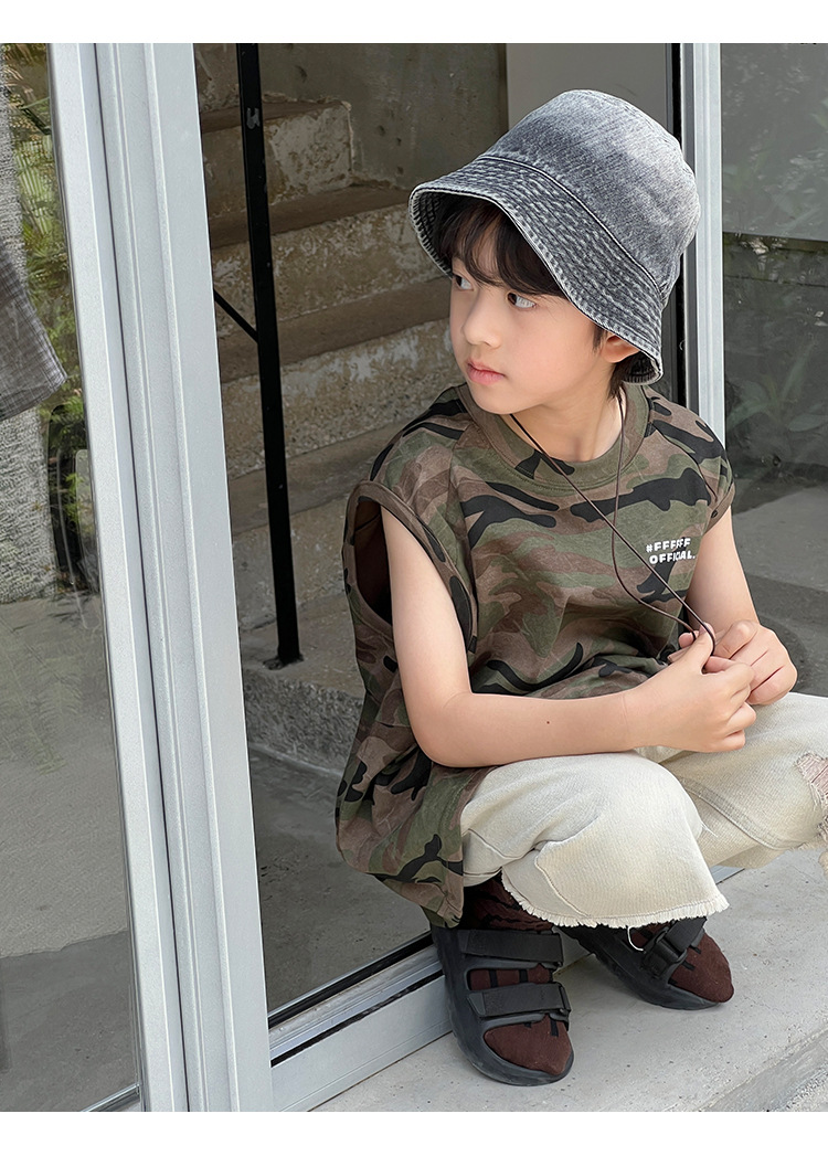 2026년 여름 트렌드 신상품 남아용 한국 스타일 루즈핏 캐주얼 민소매 패션 카모플라주 멋진 풀오버 조끼