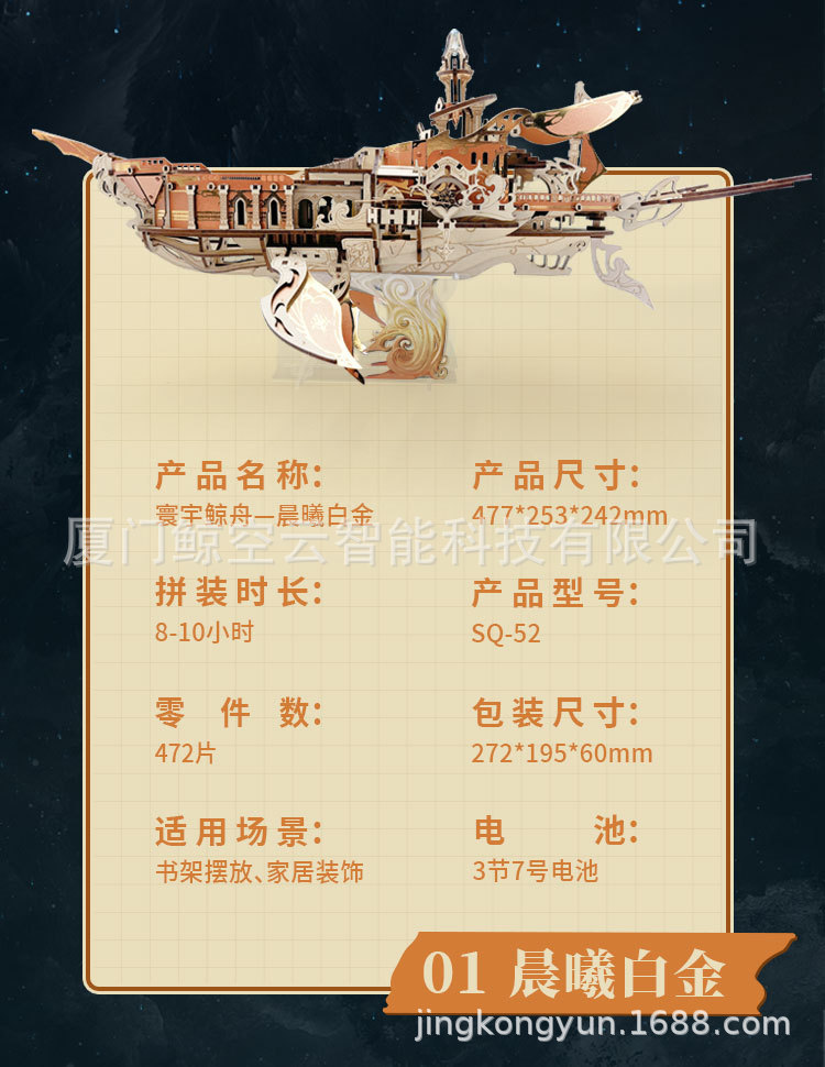 고래는 하늘과 바다를 맴다 고래선박 조립식 DIY 모델 장난감 3D 입체 퍼즐 선물 남자아이들을 위한 음향 효과 포함