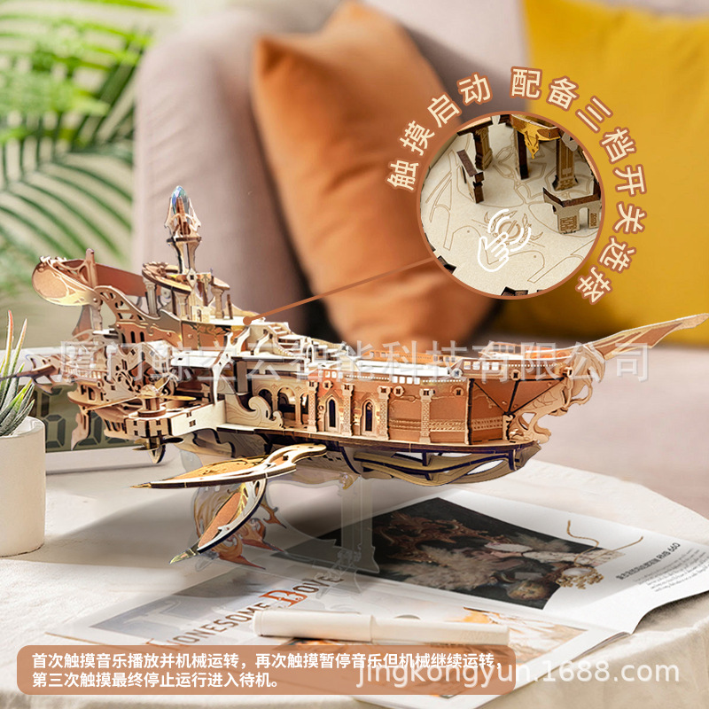 고래는 하늘과 바다를 맴다 고래선박 조립식 DIY 모델 장난감 3D 입체 퍼즐 선물 남자아이들을 위한 음향 효과 포함스토어 가기