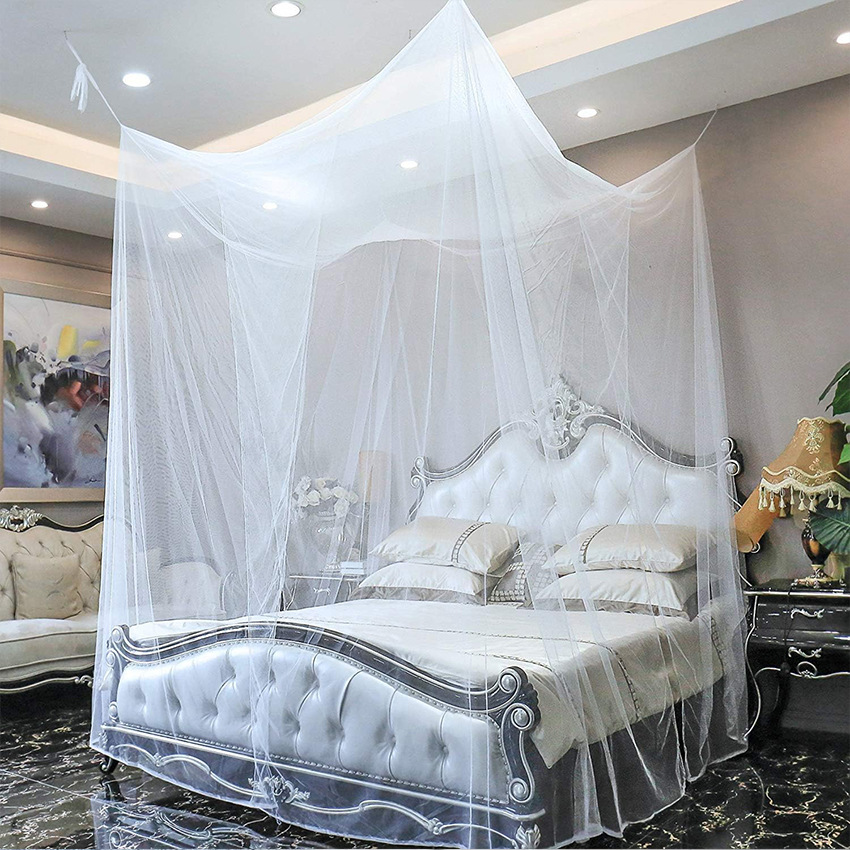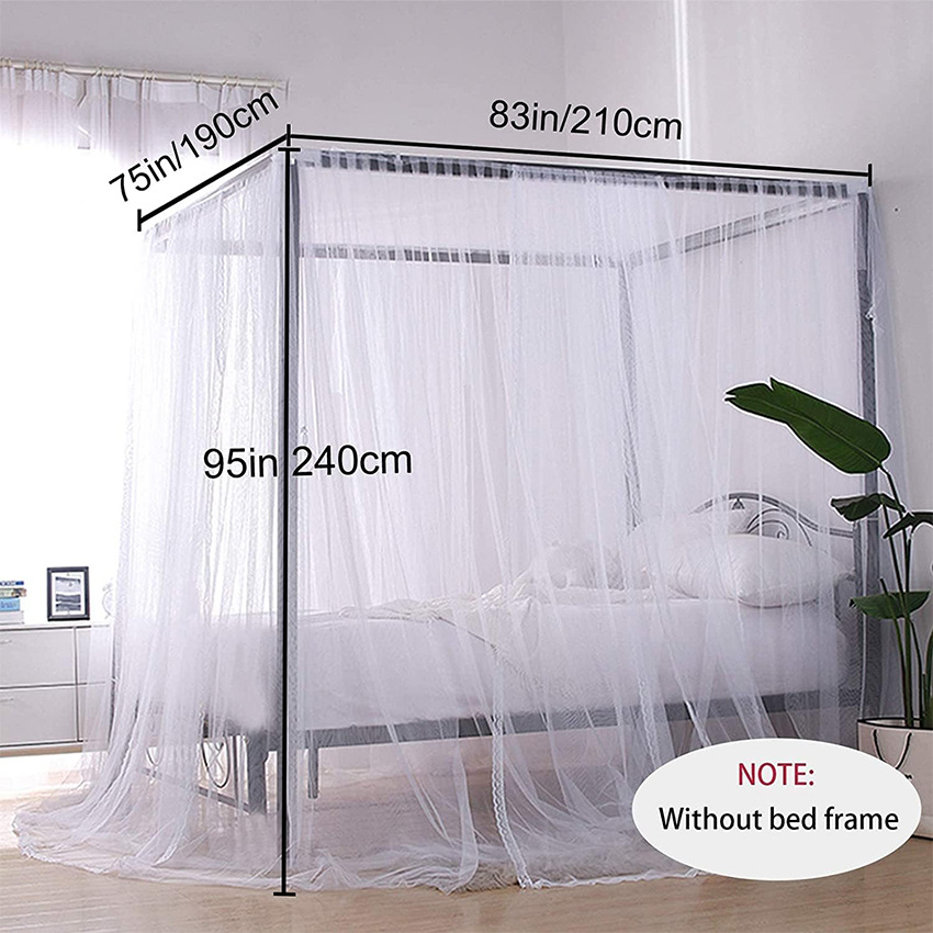 여름 사각 모기장, 4개의 문이 있는 모기장, 4개의 모서리 기둥이 있는 침대 커버, 침대 캐노피, 설치가 필요 없는 모기장, 침대 커튼, 침대 커튼스토어 가기
