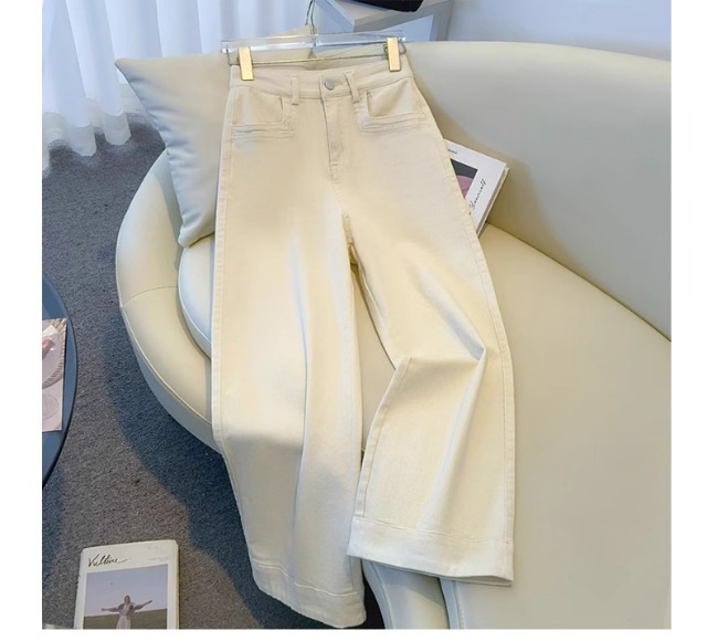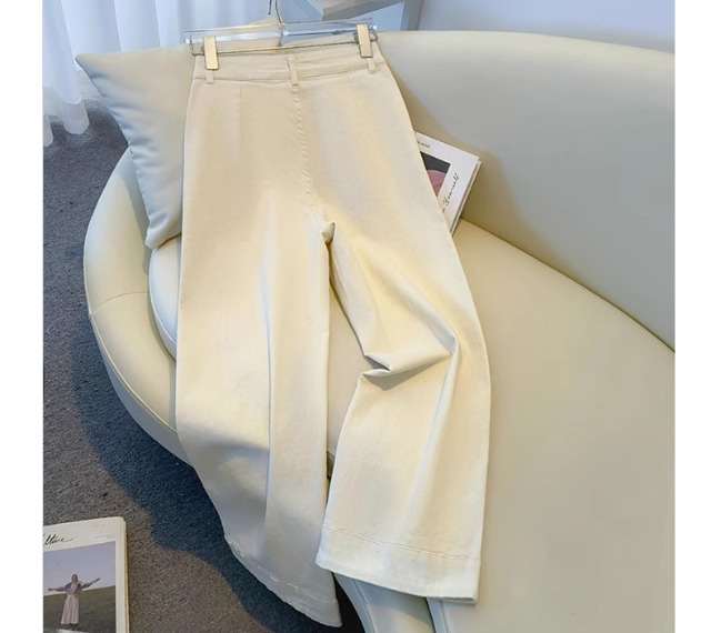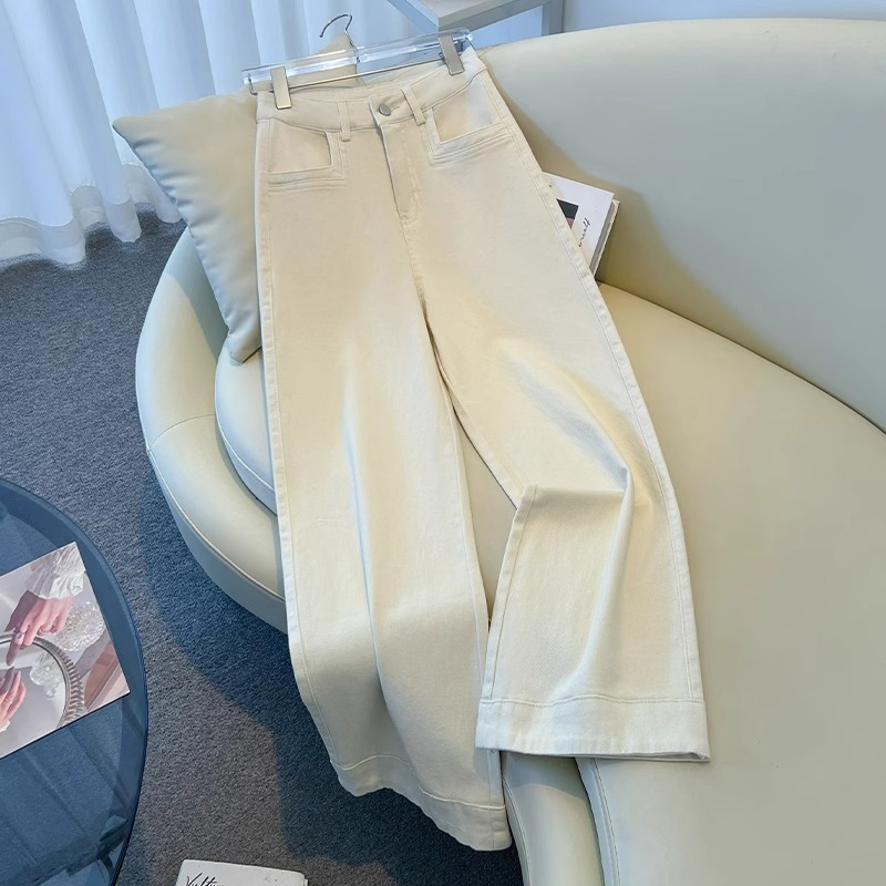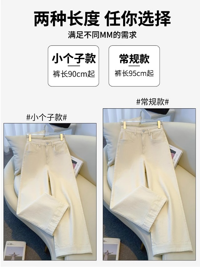흰색 넓은 다리 청바지 여성의 봄과 여름 2025 새로운 유럽 폭발 높은 허리 느슨한 캐주얼 스트레이트 바지 작은 남성스토어 가기