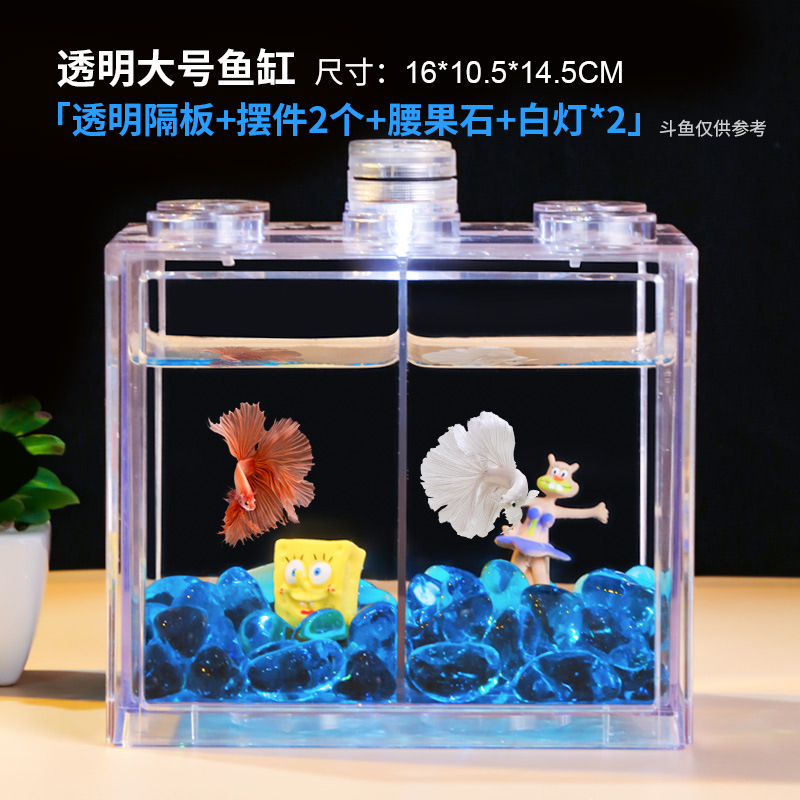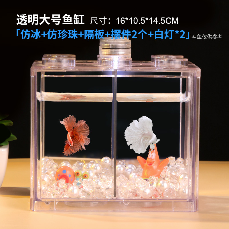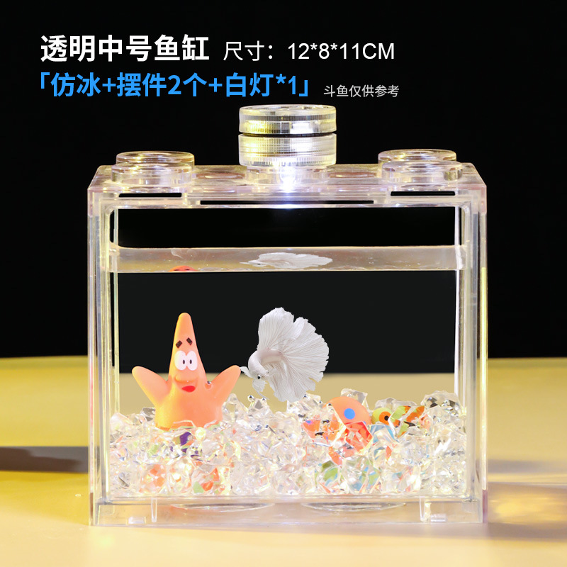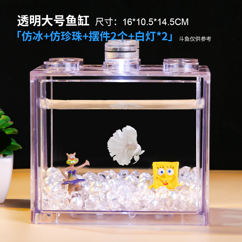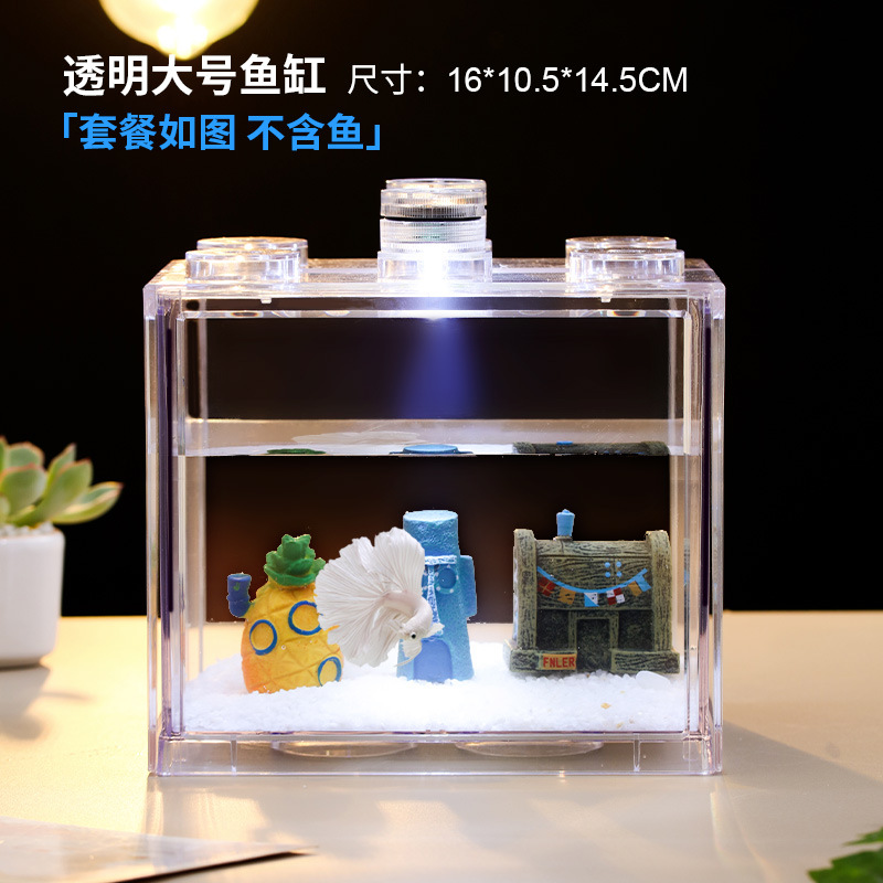 태국 Betta 특수 수조 아크릴 빌딩 블록 상자 초소형 홈 데스크탑 크리 에이 티브 인터넷 연예인 미니 투명 탱크