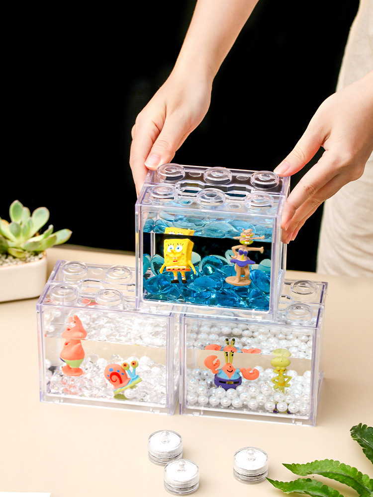 태국 Betta 특수 수조 아크릴 빌딩 블록 상자 초소형 홈 데스크탑 크리 에이 티브 인터넷 연예인 미니 투명 탱크스토어 가기