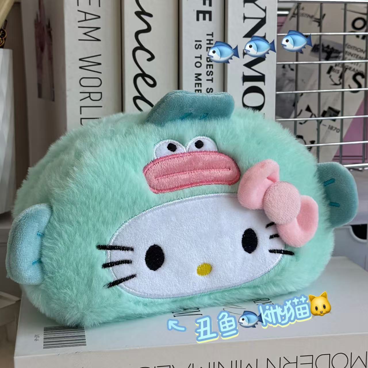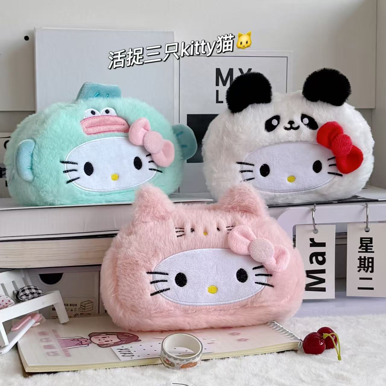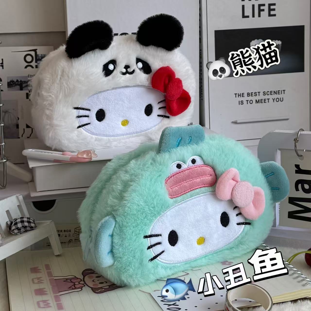 새로운 귀여운 헬로키티 펜 가방 플러시 드레스 업 비버 루비 고급스러운 소녀 대용량 문구 가방
