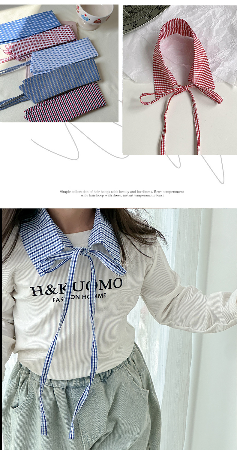어린이 가짜 칼라 하이 엔드 레이스 업 격자 무늬 셔츠 칼라 올 매치 스웨터 타이 여성 액세서리