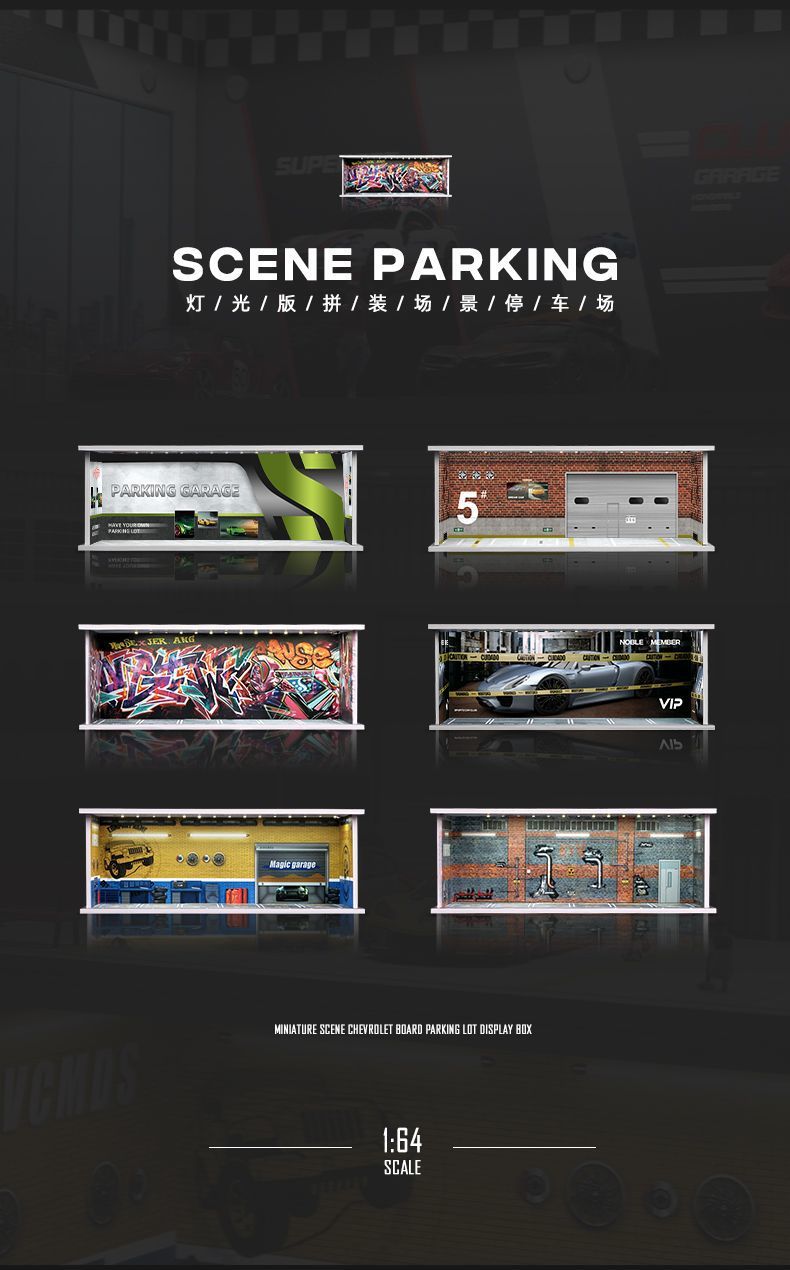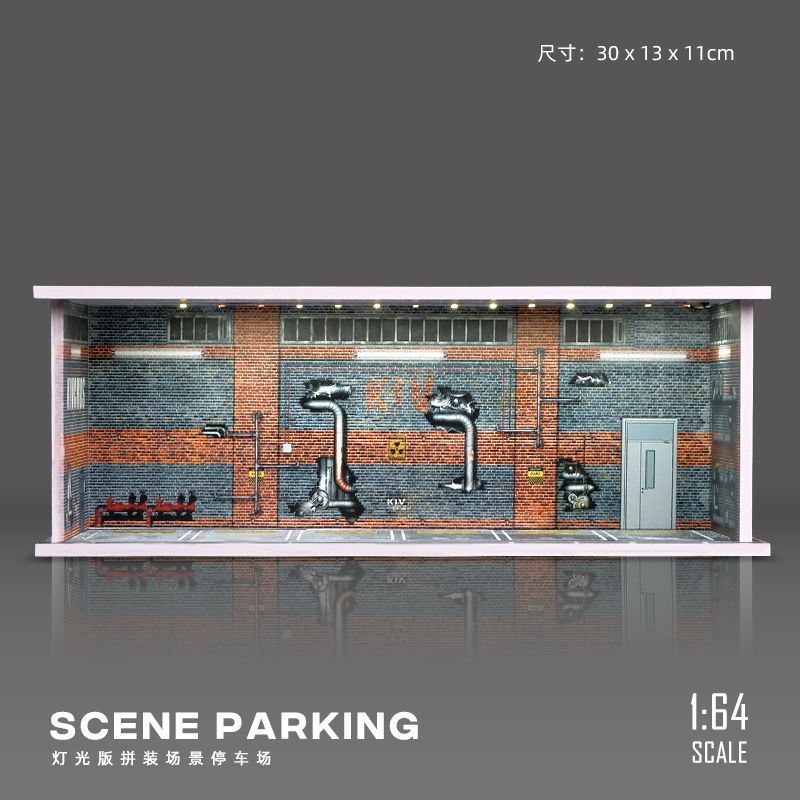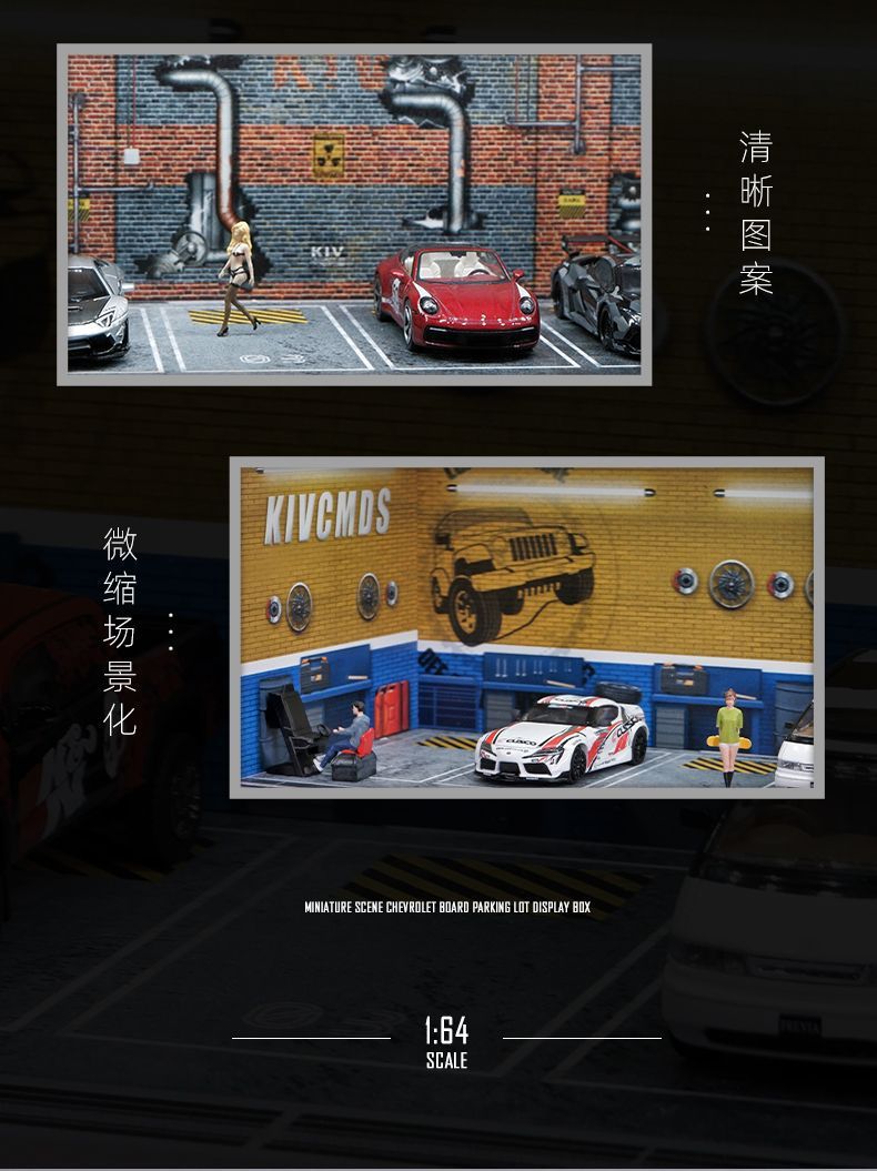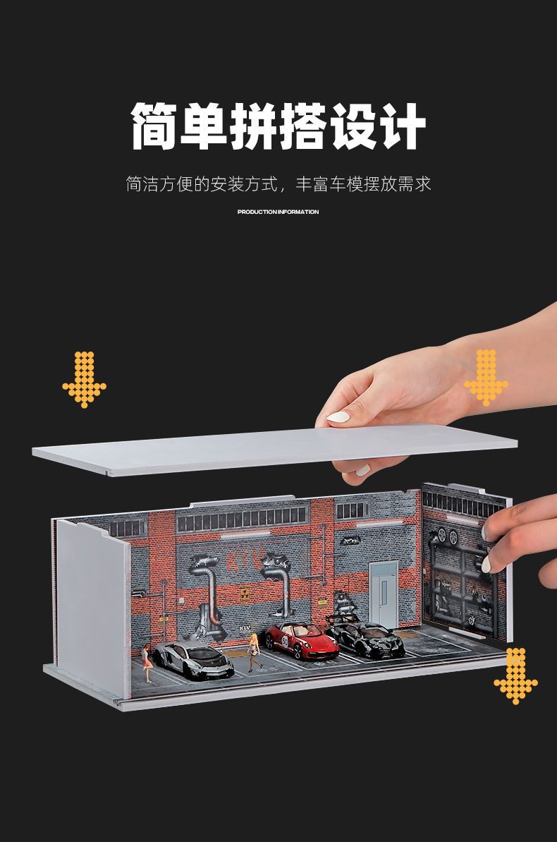 1:64 고투명 아크릴 조명 버전 PVC 조립 차고 장면 시뮬레이션 소형 자동차 모델 디스플레이 스탠드