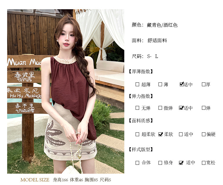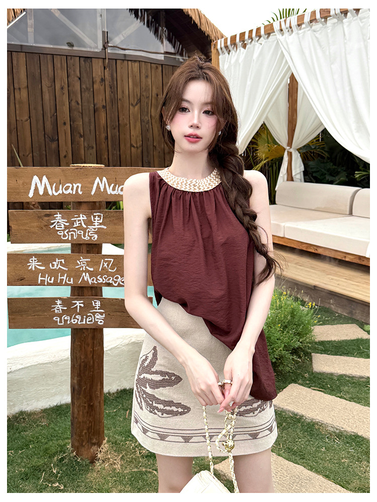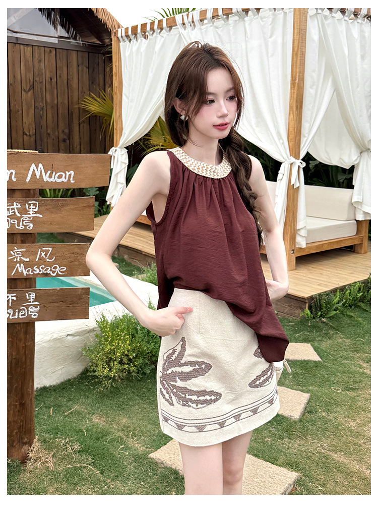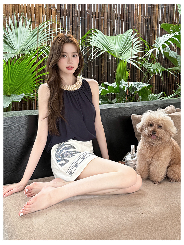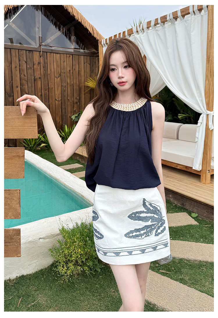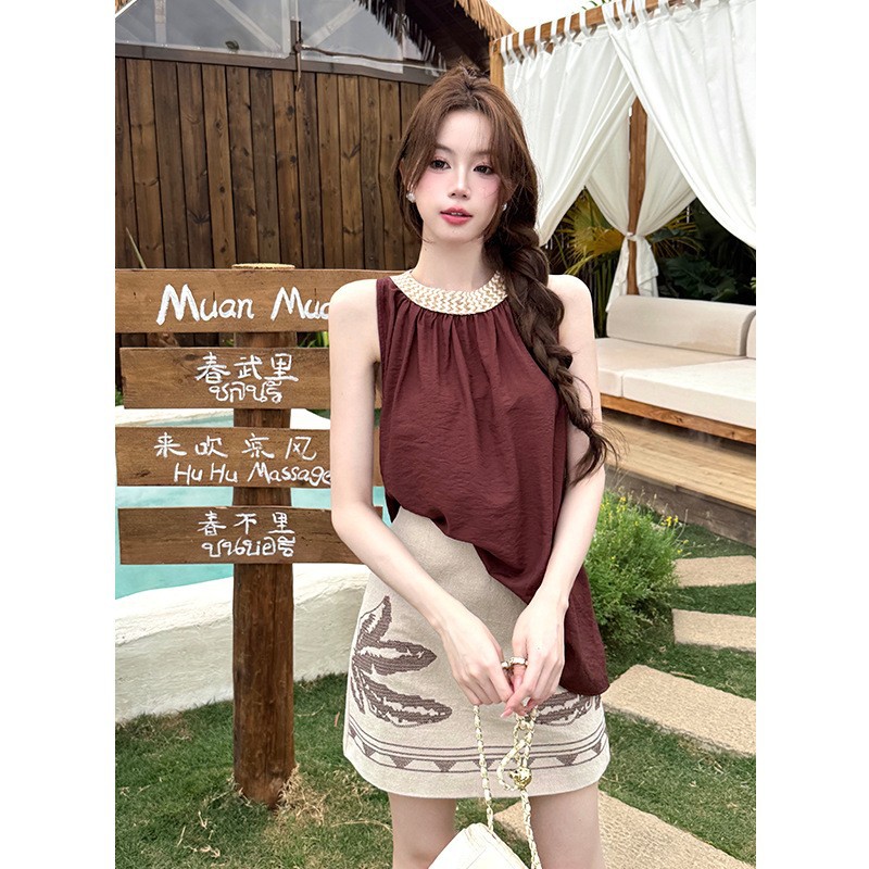 하이 퀄리티 여름 새로운 달콤한 우아한 민소매 쉬폰 셔츠 자수 스커트 투피스 세트 여성 패션 세트스토어 가기