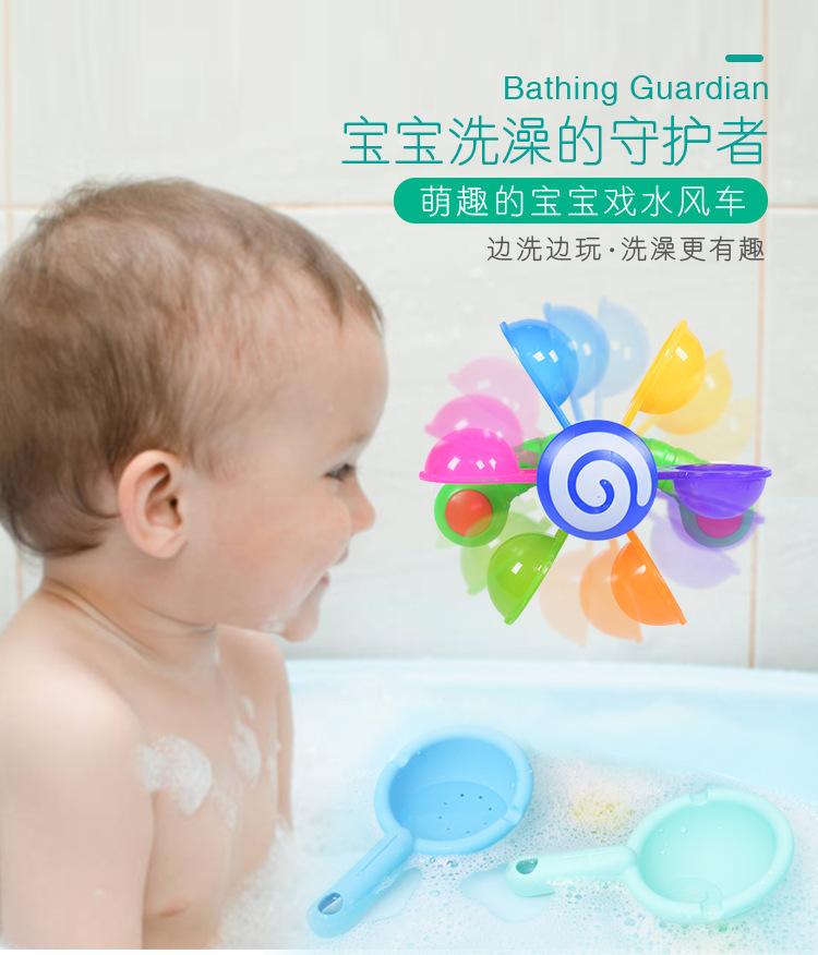 국경 간 어린이 목욕 회전 물 풍차 스푼 유아 욕실 놀이 물 무지개 풍차 샤워 장난감스토어 가기