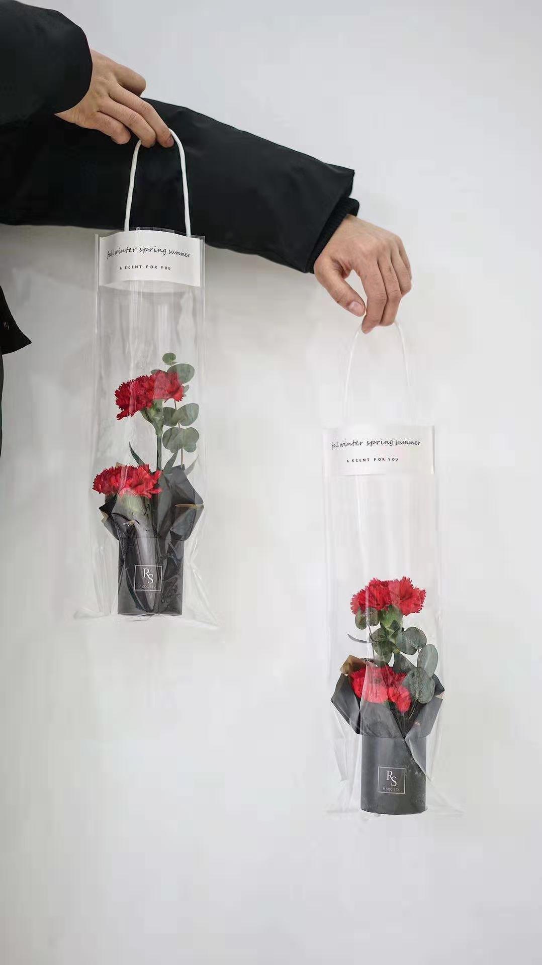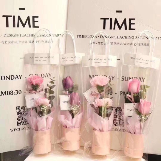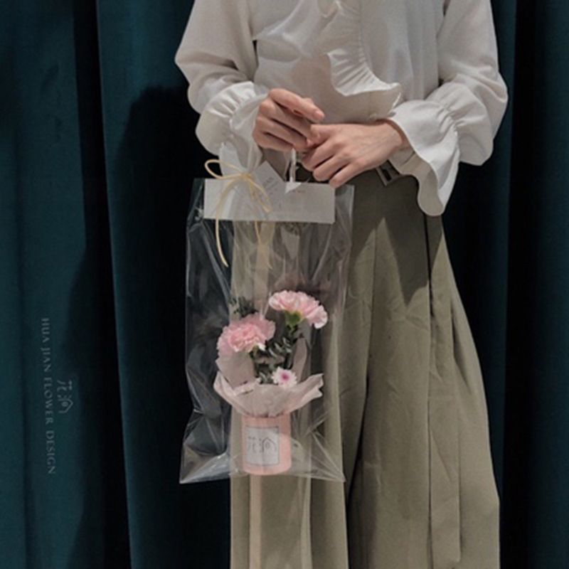 Ins 사이버 연예인 휴대용 꽃 가방 투명한 간단한 크리스마스 선물 가방 교사의 날 꽃 패키지 가방스토어 가기
