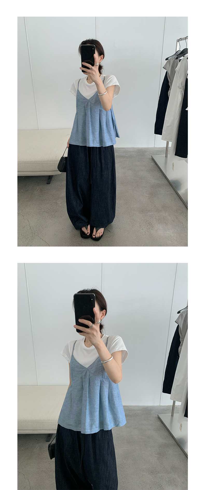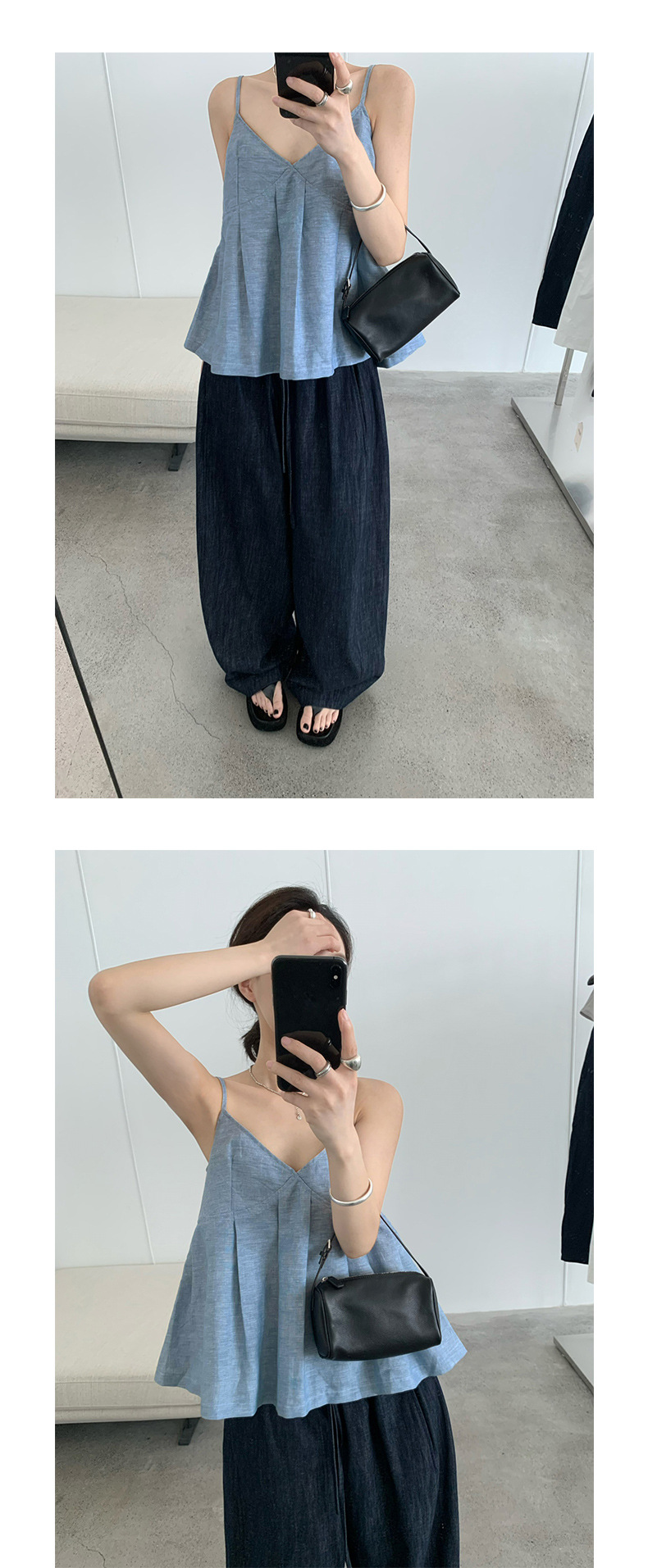 TG 신선하고 달콤한 가리 주름 A 라인 슬링 작은 셔츠 여성의 2025 여름 새로운 V 넥 탑 24882