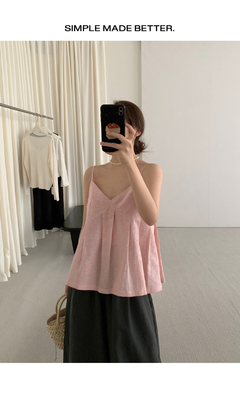 TG 신선하고 달콤한 가리 주름 A 라인 슬링 작은 셔츠 여성의 2025 여름 새로운 V 넥 탑 24882스토어 가기
